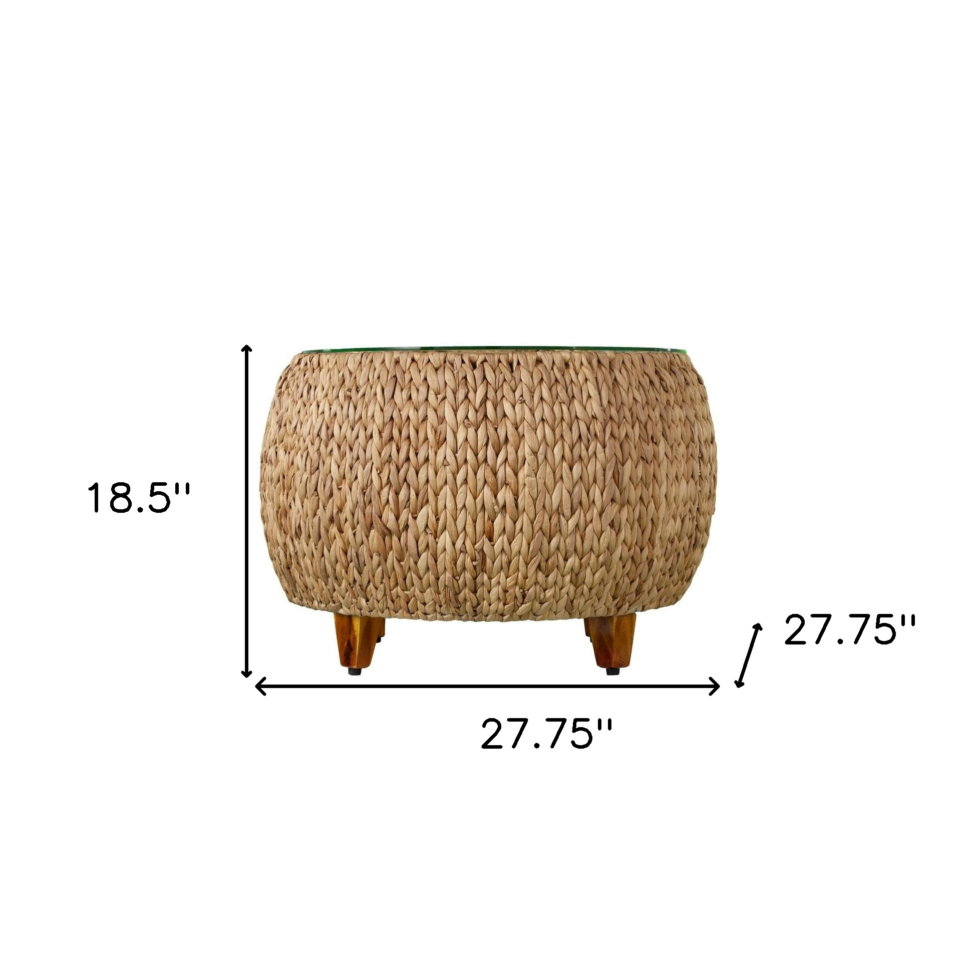 Add handsome, fashionable design to your living space with this 28" natural and natural brown glass and solid wood square coffee table. This coffee table is expertly made from high quality rattan/wicker. A natural solid wood frame is finished off with a natural brown glass top that is the epitomy of quality construction and design. This square table features a unique shape to give your room a visually pleasing accent. Offering a nice color combination, the top of this table is table is natural brown, while the base compliments it nicely in natural. It has a lovely design that will definitely breathe some fresh air into your interior. This coffee table is the sturdy, reliable and stylish answer to your living room needs. 18.5" H x 27.75" W x 27.75" D