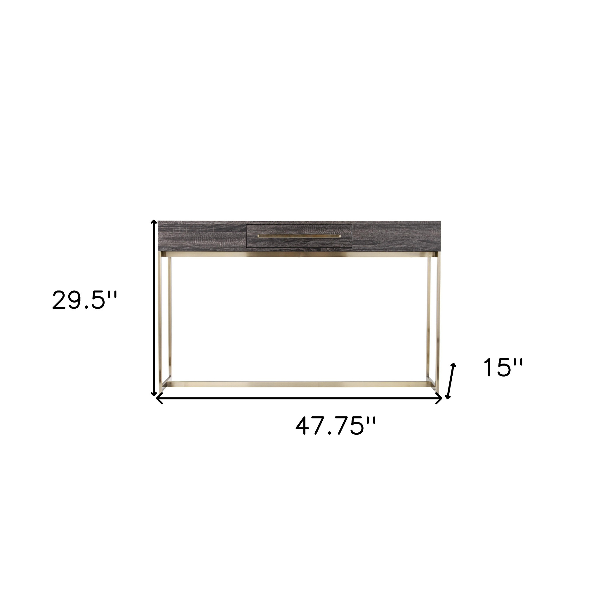 Our 48-inch gray and gold frame console table and drawers a great addition to any room, serving as a stylish and decorative element. This versatile table is a classic rectangular shape, which will easily fit into most any space in your home. This table has a top made with gray manufactured wood that is known for durability and easy maintenance. Versatile in use, console tables can be used for a variety of purposes in a variety of rooms and settings. 29.5-inch H x 47.75-inch W x 15-inch D