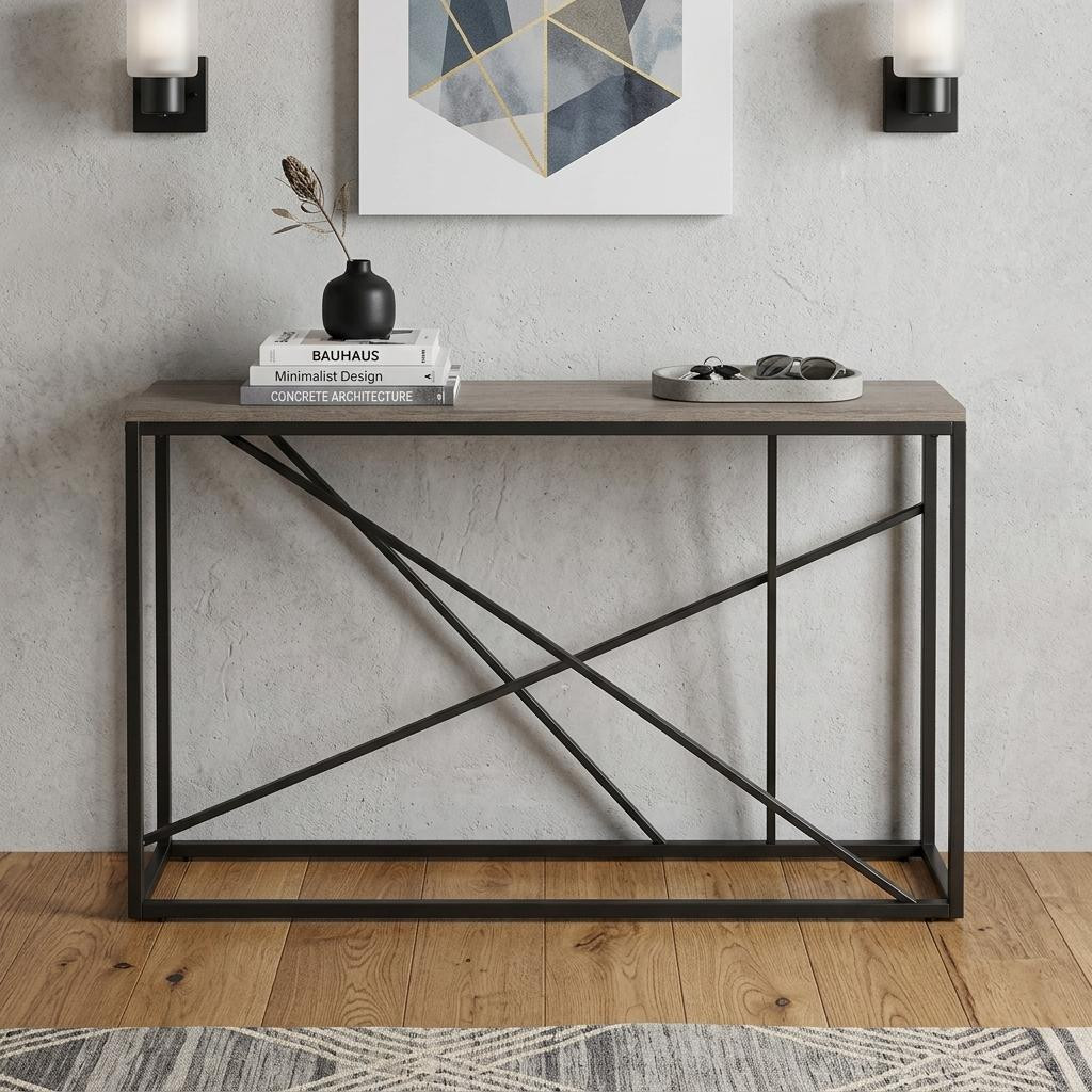 Our 52-inch taupe and gray faux stone frame console table a great addition to any room, serving as a stylish and decorative element. This rectangular table has clean lines and plenty of surface area. Ideal for living rooms, bedrooms, home offices, and lounge areas, this console table is not only good looking but multi-functional and practical addition to your space. 29-inch H x 52-inch W x 10-inch D