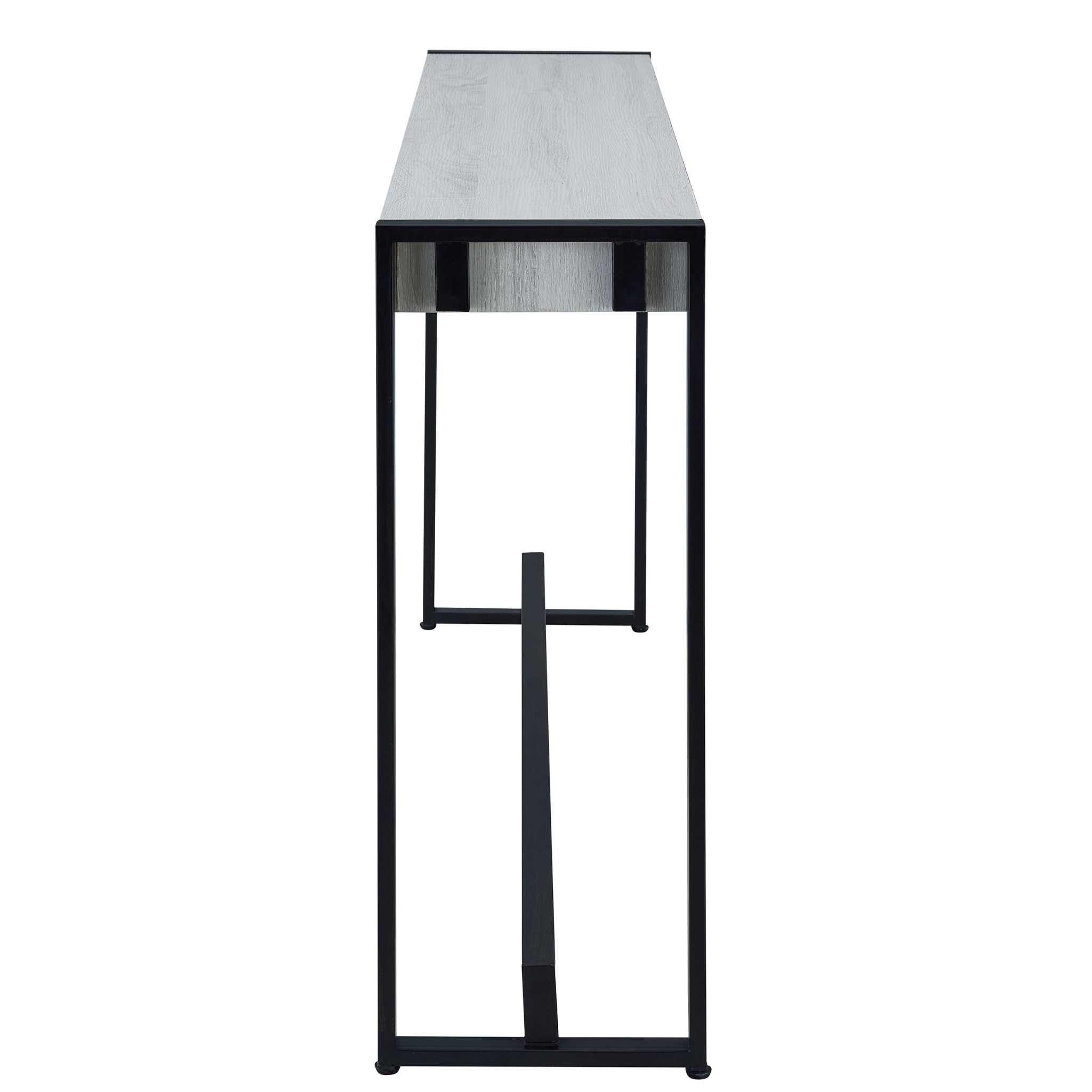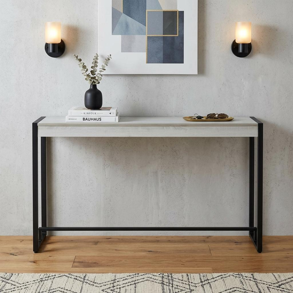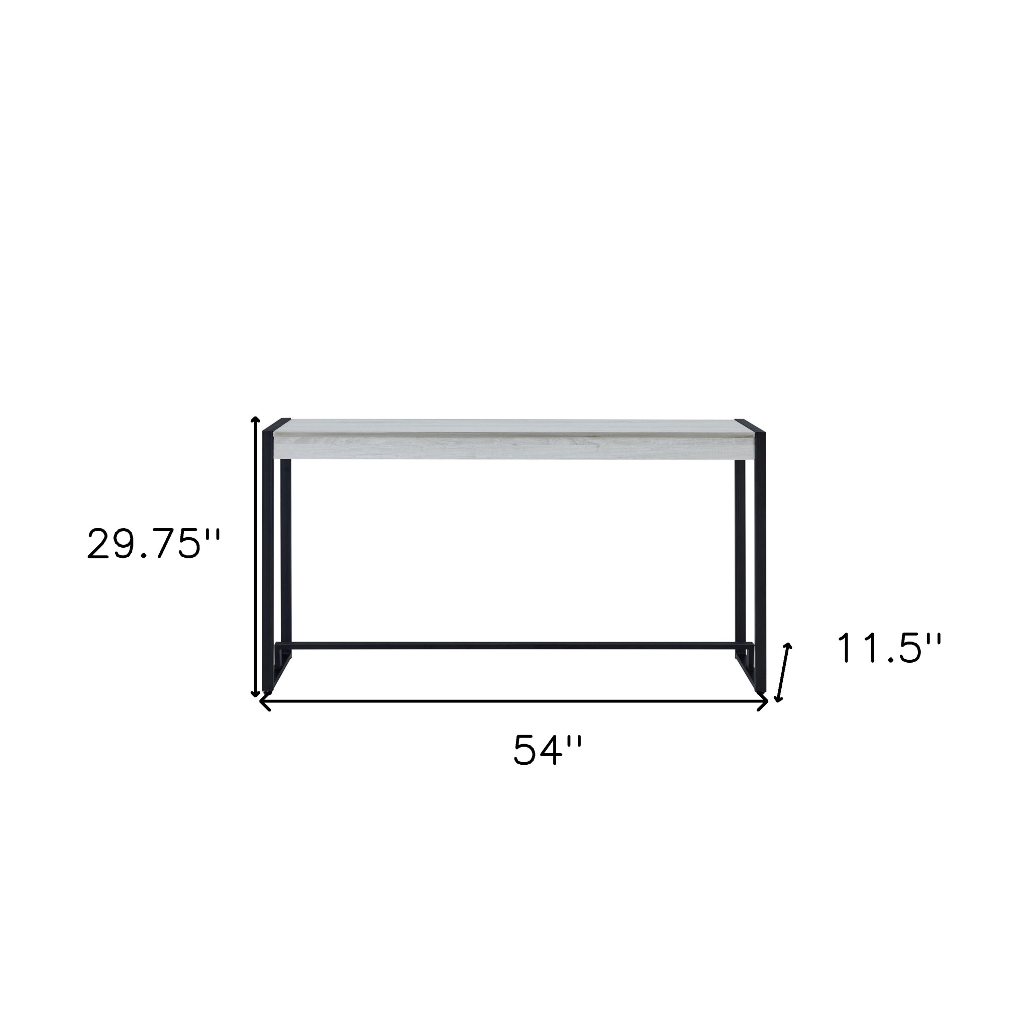 This 54-inch white and black distressed sled console table can provide a variety of practical functions such as providing extra storage space, serving as a display area for decorative items or acting as a catch-all for keys, mail, and other small items. This versatile table is a classic rectangular shape, which will easily fit into most any space in your home. This table has a top made with white manufactured wood that is known for durability and easy maintenance. Ideal for living rooms, bedrooms, home offices, and lounge areas, this console table is not only good looking but multi-functional and practical addition to your space. 29.75-inch H x 54-inch W x 11.5-inch D