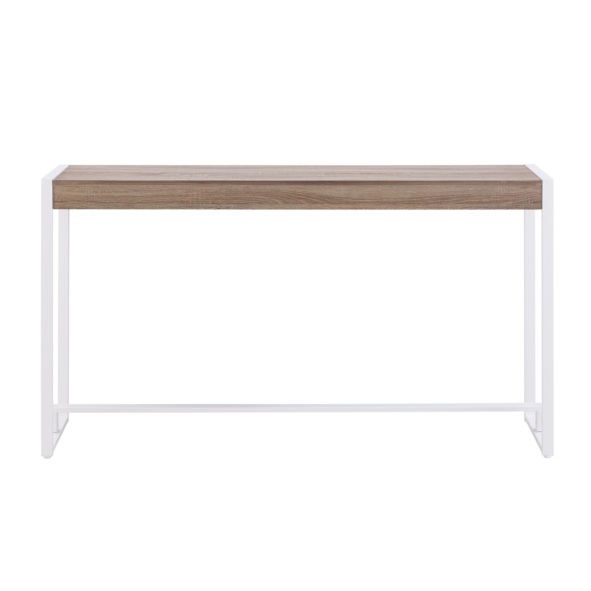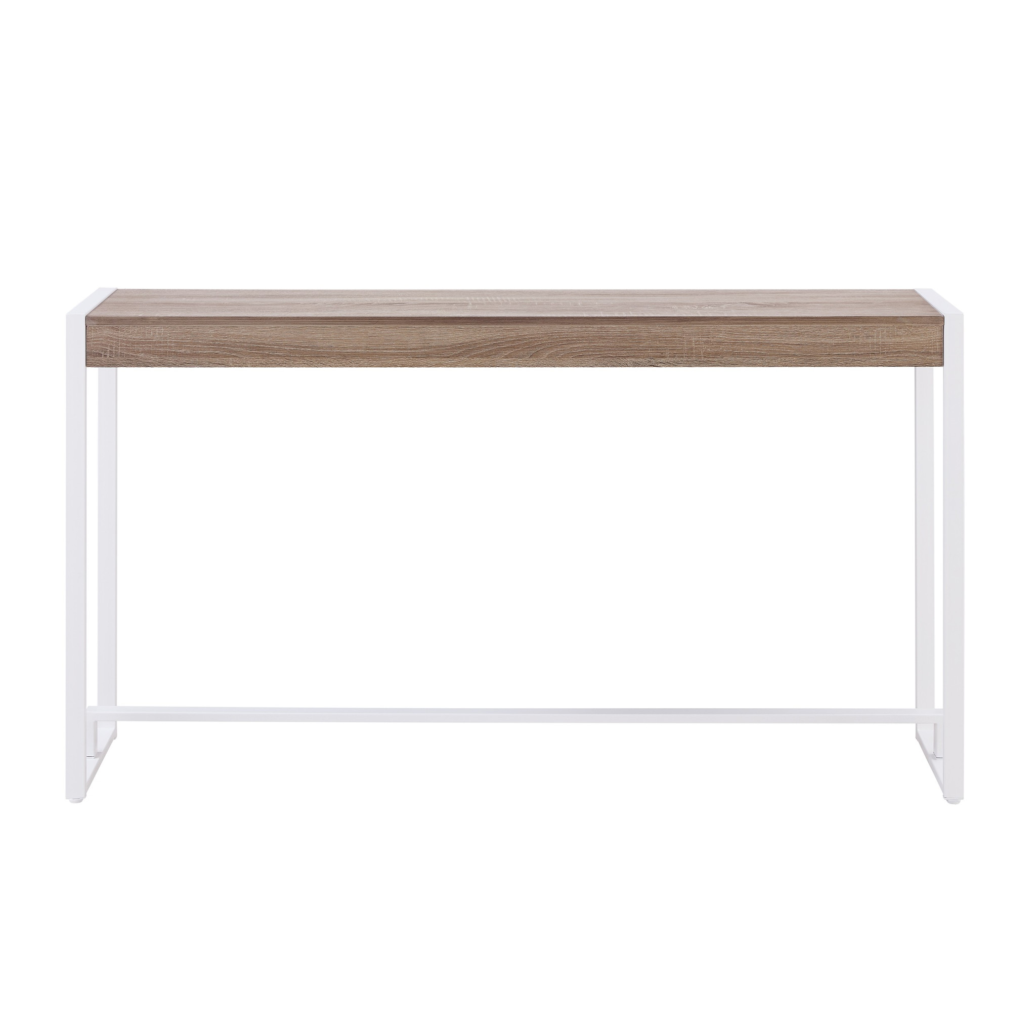 This 54-inch gray brown and white sled console table is a high-quality, long-lasting piece of furniture that you can enjoy for years to come. This versatile table is a classic rectangular shape, which will easily fit into most any space in your home. This table has a top made with gray brown manufactured wood that is known for durability and easy maintenance. Ideal for living rooms, bedrooms, home offices, and lounge areas, this console table is not only good looking but multi-functional and practical addition to your space. 29.75-inch H x 54-inch W x 11.5-inch D