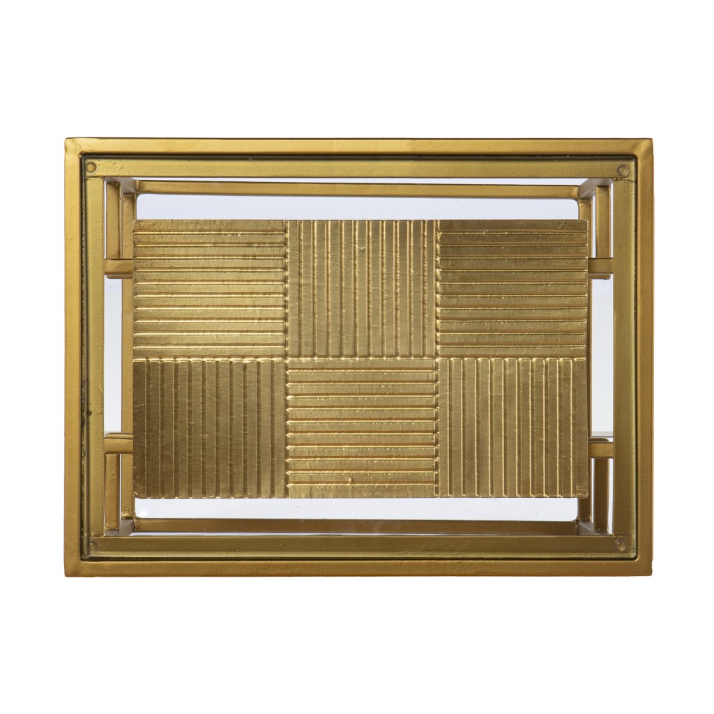 Optimize your space and add some charm to your room with the 24" brass glass and iron rectangular end table with two shelves. This marvelous end or side table is made from high quality metal. A sleek brass monotone color gives this iron and glass table a fresh and updated look. There are two shelves that will help to keep clutter at bay. A great accent on either side of the sofa or bed, this adorable end or side table is just what you need. You can also use it as an entryway table to hold your keys. 23.5" H x 15.75" W x 11.75" D