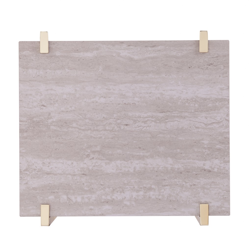 Distinctive in style, the 24" brass manufactured wood and iron square end table with shelf radiates a versatile charm. This accent or side table is a high quality piece, expertly made of high grade metal. A sleek brass monotone color gives this iron and manufactured wood table a fresh and updated look. Help to keep your space organized with the included single shelf. An ideal location for placing your snacks and drinks, and a place to keep your lamp, frames, or other accessories. This versatile table is a great accent for almost any room. 24" H x 19" W x 17.5" D