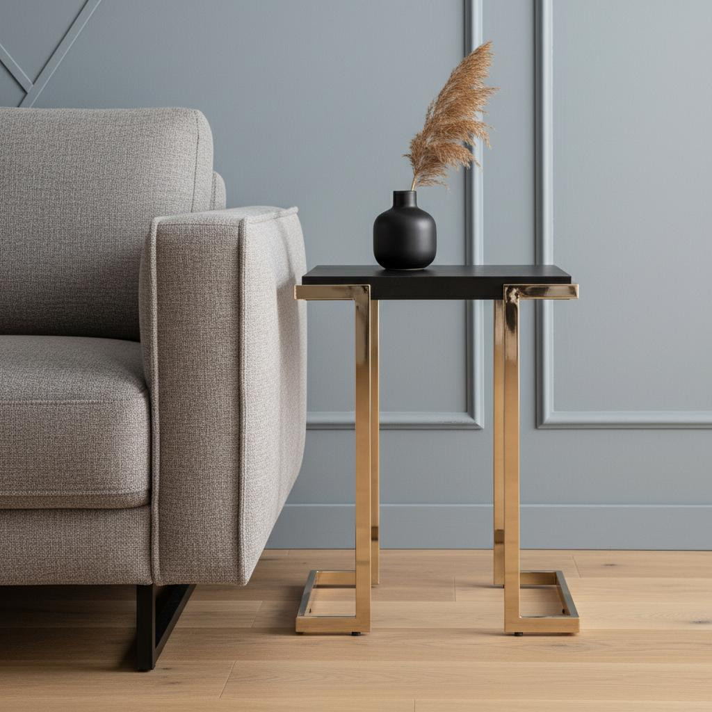 Show off your exquisite taste with this 24" black manufactured wood and iron square end table. Crafted from metal, this sturdy and versatile little table has a charming style. The black coloration looks contemporary and modern against the metal. Easy to move around or use at the couch, this handy table is an ideal location for placing your snacks and drinks, and a place to keep your lamp, frames, or other accessories. You can also use it as an entryway table to hold your keys. 24" H x 19.25" W x 19.25" D