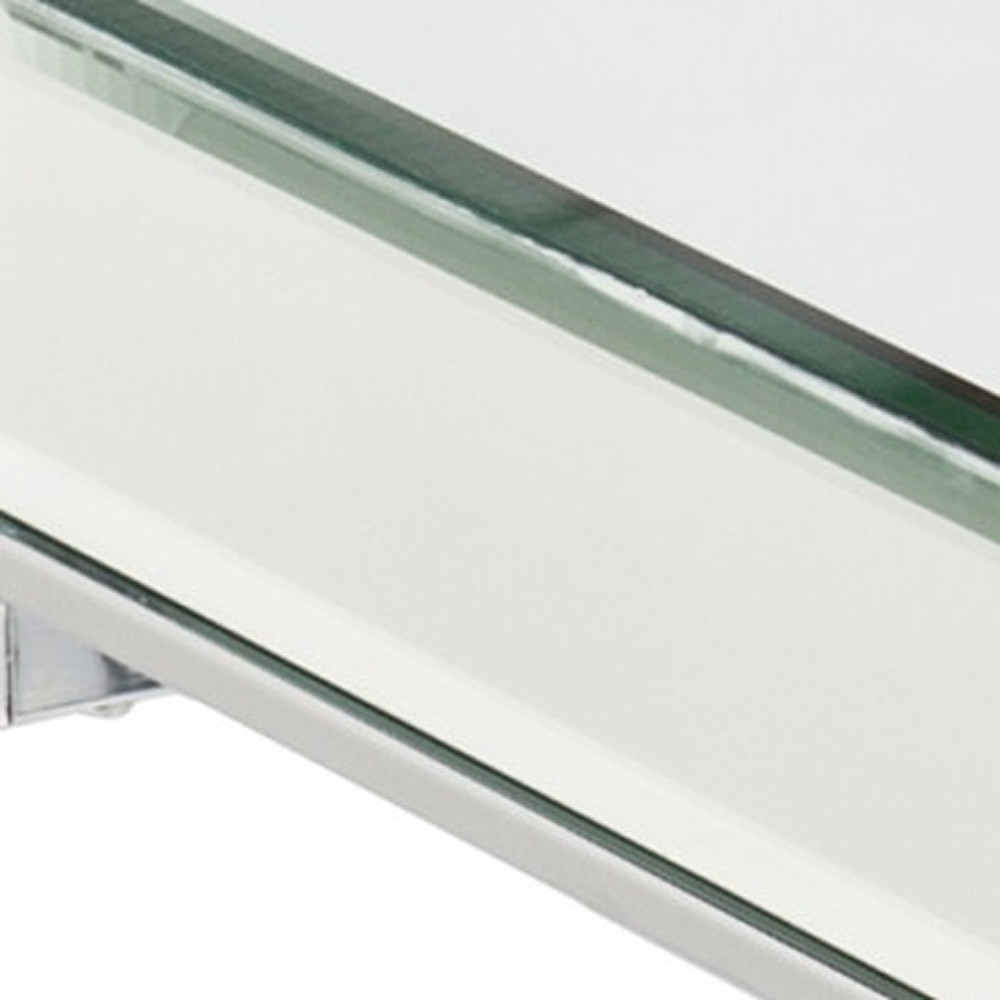 Distinctive in style the 22-inch silver and clear mirrored glass square end table radiates a versatile charm. The silver coloration of the high quality iron base marries nicely with the mirrored glass top. A great accent on either side of the sofa or bed, this adorable end or side table is just what you need. You can also use it as an entryway table to hold your keys. 22.25-inch H x 20.5-inch W x 20.5-inch D