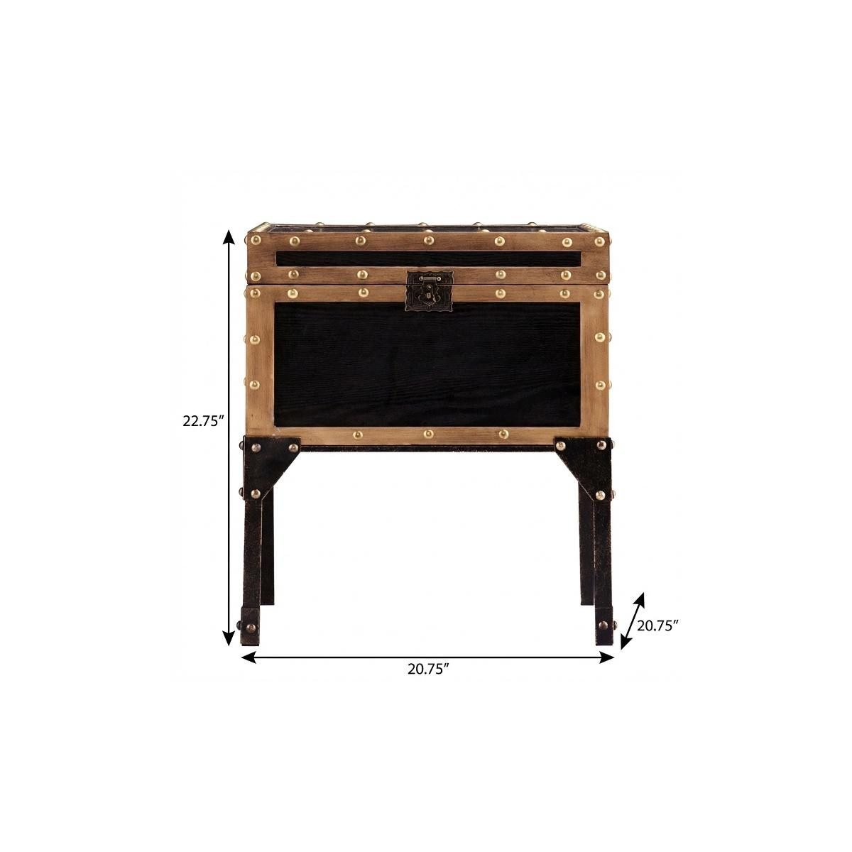 Show off your exquisite taste with this 23" black manufactured wood and iron square end table. Artfully crafted of metal, this beautiful design is chock-full of fine details. A sleek black monotone color gives this iron and manufactured wood table a fresh and updated look. An ideal location for placing your snacks and drinks, and a place to keep your lamp, frames, or other accessories. You can match it with other pieces to get the ideal look for your place. 22.75" H x 20.75" W x 20.75" D