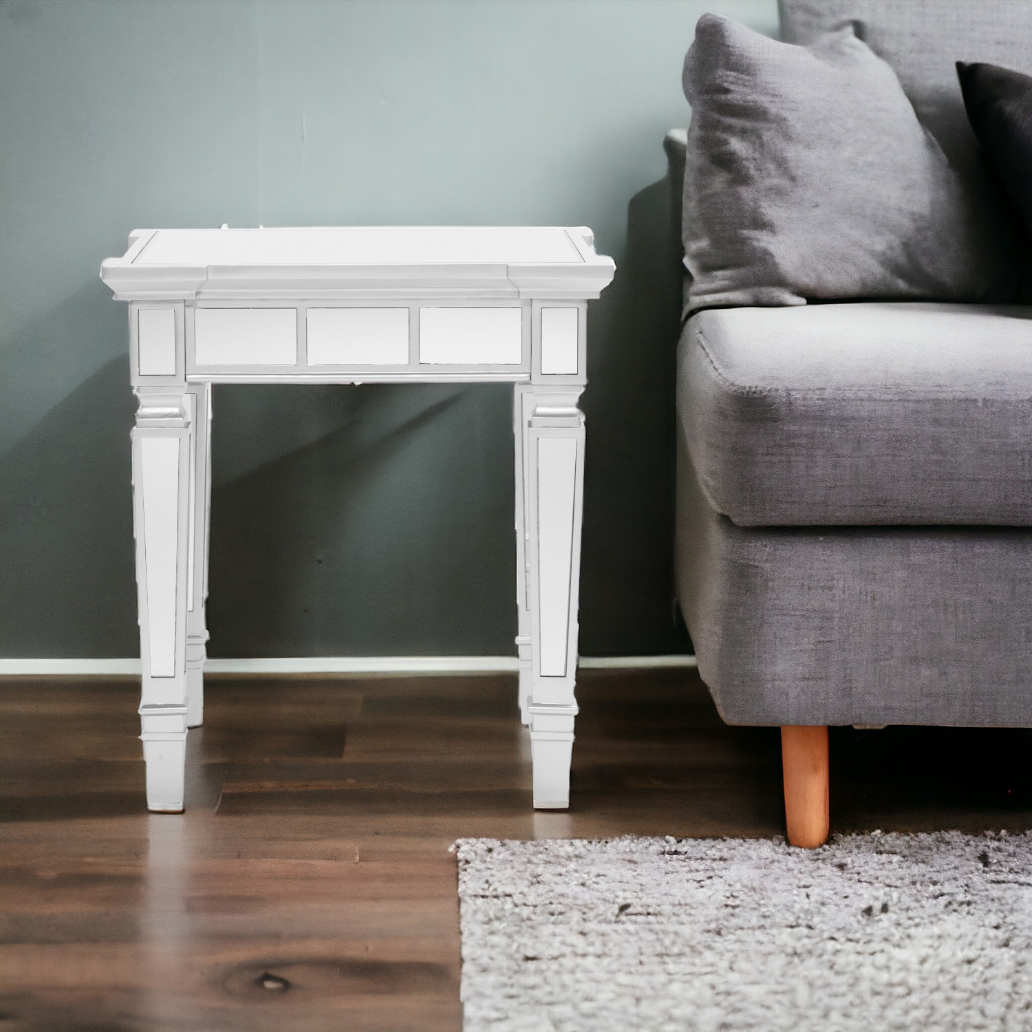 Optimize your space and add some charm to your room with the 24-inch silver glass square end table. A sleek silver monotone color gives this manufactured wood and glass table a fresh and updated look. An ideal location for placing your snacks and drinks, and a place to keep your lamp, frames, or other accessories. You can also use it as an entryway table to hold your keys. 24-inch H x 22-inch W x 22-inch D