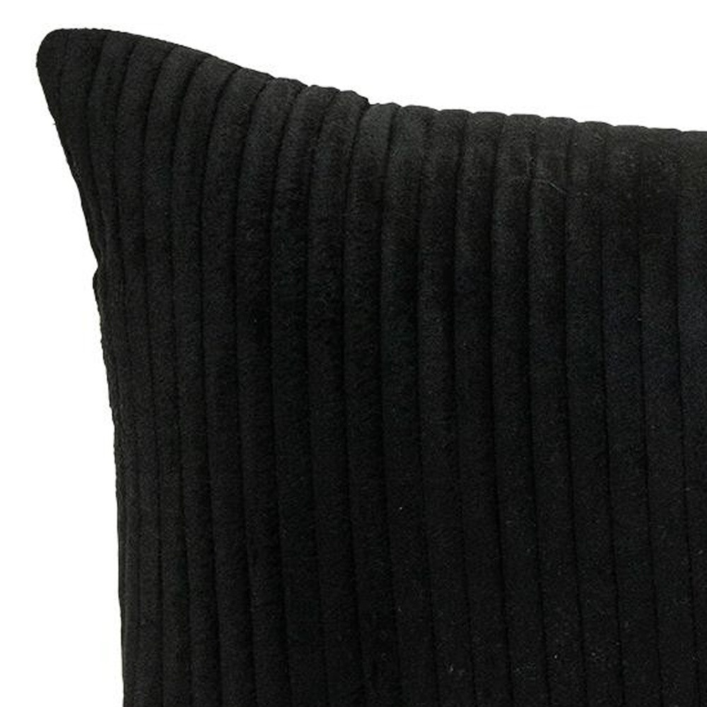 The perfect complement to your sofa, favorite chair, or bed, this 12-inch x 24-inch black and white striped velvet throw pillow is a great decorative accent. This black and white hued piece represents quality construction, expertly made from premium velvet that is not only long lasting but super soft to the touch as well. This soft polyester filled pillow not only is decorative but made to be comfy and cozy all day long. For anyone that loves to decorate or accent their space with color and texture. Decorative pillows are a great way to change up the look and feel of your space easily and quickly. 12-inch H x 24-inch W x 4-inch D