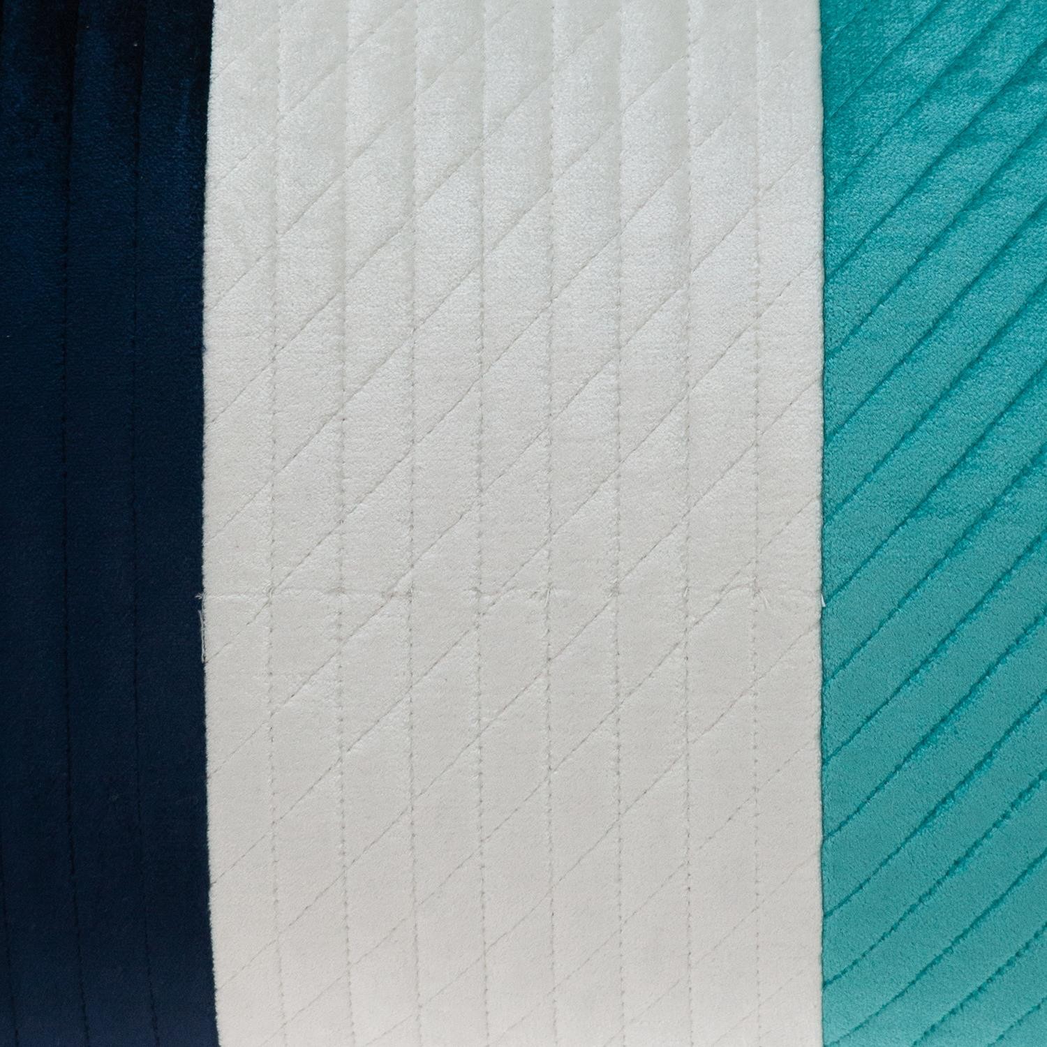 Crafted to perfection the Navy Blue and Sea Blue Quilted Colorblock Velvet Lumbar Throw Pillow will completely revitalize your personal space. The beautiful soft and fluffy velvet texture of the quilt workmanship is distinctly visible in it's vertical and diagonal lines, that deliver exquisite comfort. Easy cleaning of the cushion is offered in terms of a hidden zipper that is neatly concealed on the bold color background. Fall into complete pleasure with this three color toned throw pillow skillfully designed to complement your delicate decor space. 12" x 24" x 4"