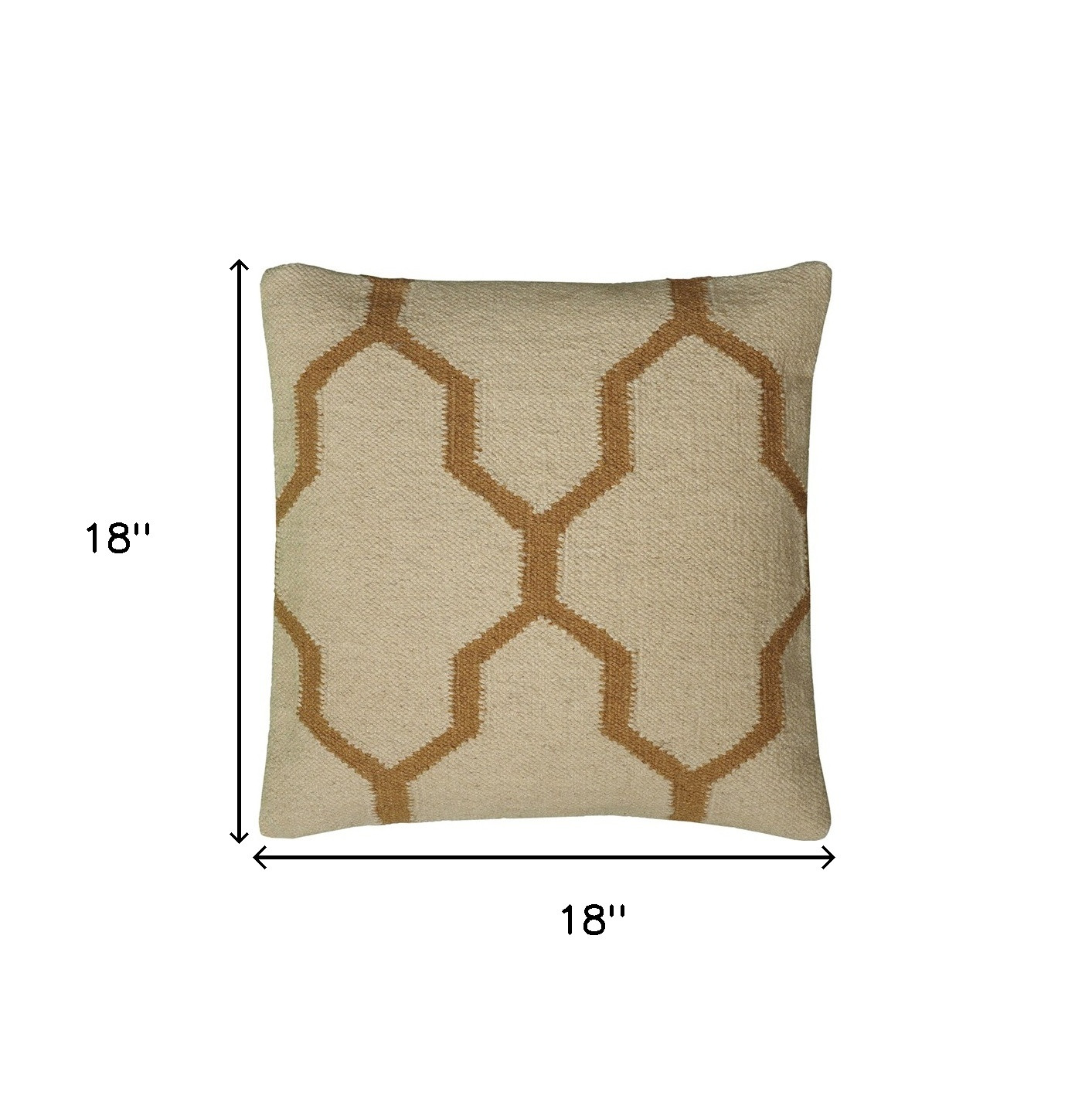 This 18-inch natural and gold quatrefoil cotton throw pillow will add a beautiful decorative accent to your decor. This pillow features warm neutral colors, and an updated quatrefoil pattern. Expertly made from durable, hand-woven cotton that is not only long lasting but soft to the touch as well. This soft polyester filled pillow not only is decorative but made to be comfy and cozy all day long. Great to use on its own or mix with other decorations for the perfect look. A great decorative accessory to add color and dimension to your favorite chair, accent your sofa, or to use as part of your bed ensemble. 18.00-inch h x 18.00-inch w x 6.25-inch d.