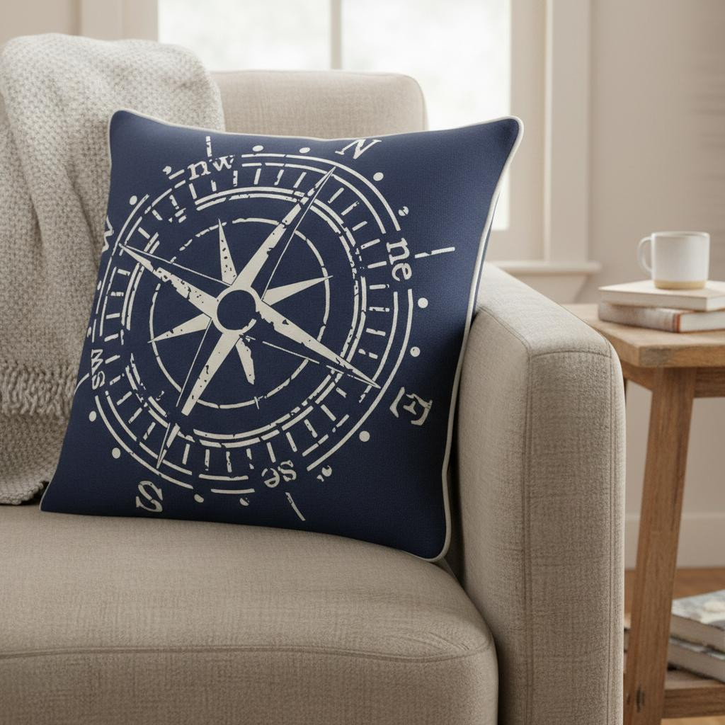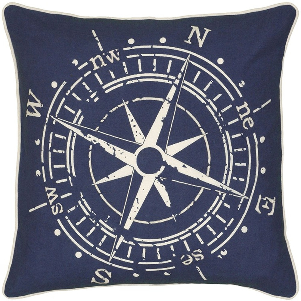 Add an air of fashion to your room and rejuvenate the space with this cute and fashionable 18-inch x 18-inch navy and white compass cotton zippered pillow. This navy and white hued piece represents quality construction, expertly made from premium 100% cotton that is not only long lasting but super soft to the touch as well. This soft polyfill filled pillow not only is decorative but made to be comfy and cozy all day long. Decorative pillows are a great way to change up the look and feel of your space easily and quickly. 18-inch H x 18-inch W x 6.25-inch D