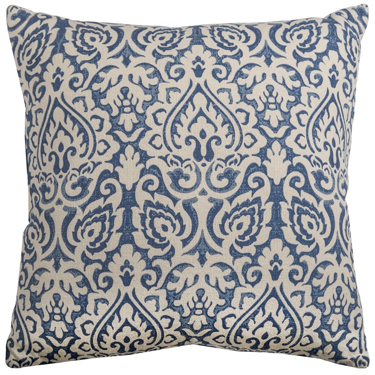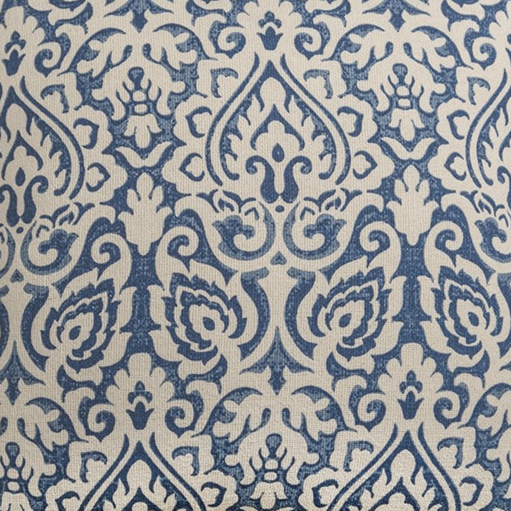 This 22-inch blue and natural damask cotton throw pillow will add a beautiful decorative accent to your decor. A casually chic color combination and timeless classic patterning make this decorative pillow easy to assimilate in with your other decor. This soft polyester filled pillow not only is decorative but made to be comfy and cozy all day long. Decorative pillows are a great way to change up the look and feel of your space easily and quickly. A great decorative accessory to add color and dimension to your favorite chair, accent your sofa, or to use as part of your bed ensemble. 22-inch h x 22-inch w x 6.25-inch d.