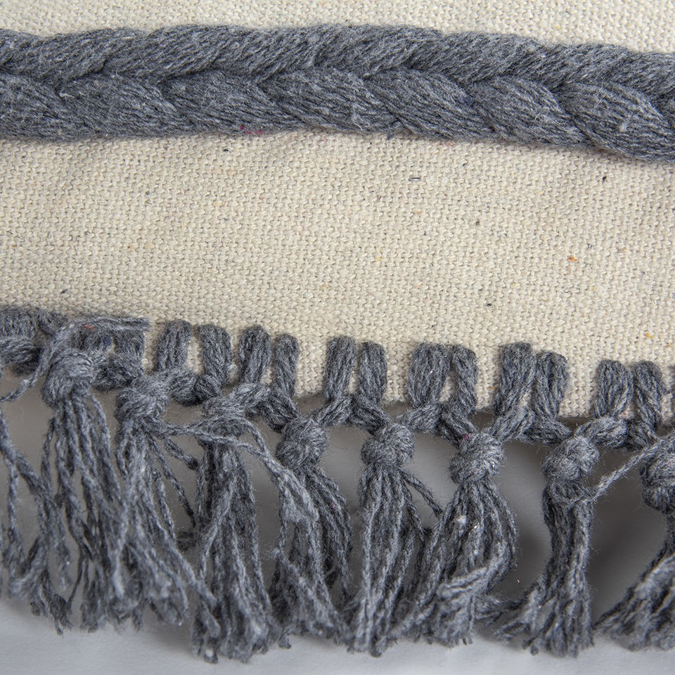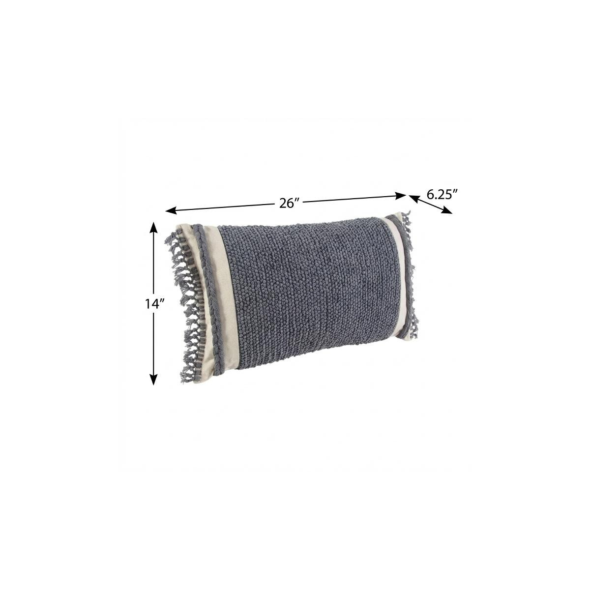 Bring a bit of fashion and zip to your space with this eye-catching and comfy 14-inch x 26-inch gray and off white braided cotton throw pillow. This bohemian chic, artisanal style, soft and textural pillow is made from high grade cotton that is durable and long lasting. Super soft and built to hold its shape, this polyester-filled pillow is a great option. Decorative pillows are a great way to change up the look and feel of your space easily and quickly. A great decorative accessory to add color and dimension to your favorite chair, accent your sofa, or to use as part of your bed ensemble. 14.00-inch h x 26.00-inch w x 6.25-inch d.