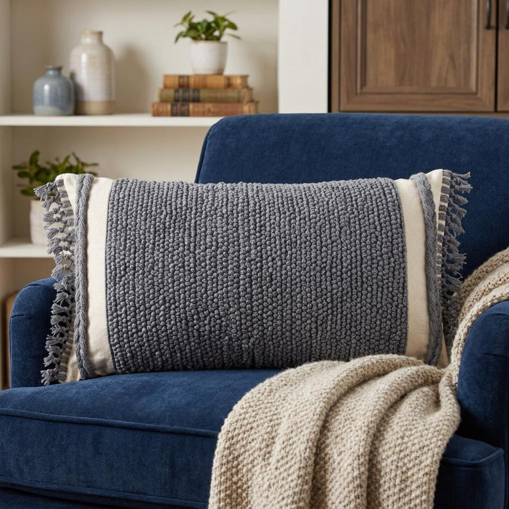 white braided cotton throw pillow, braided cotton throw pillow, cotton throw pillow, 14" X 26" gray white braided cotton, gray white braided cotton throw |