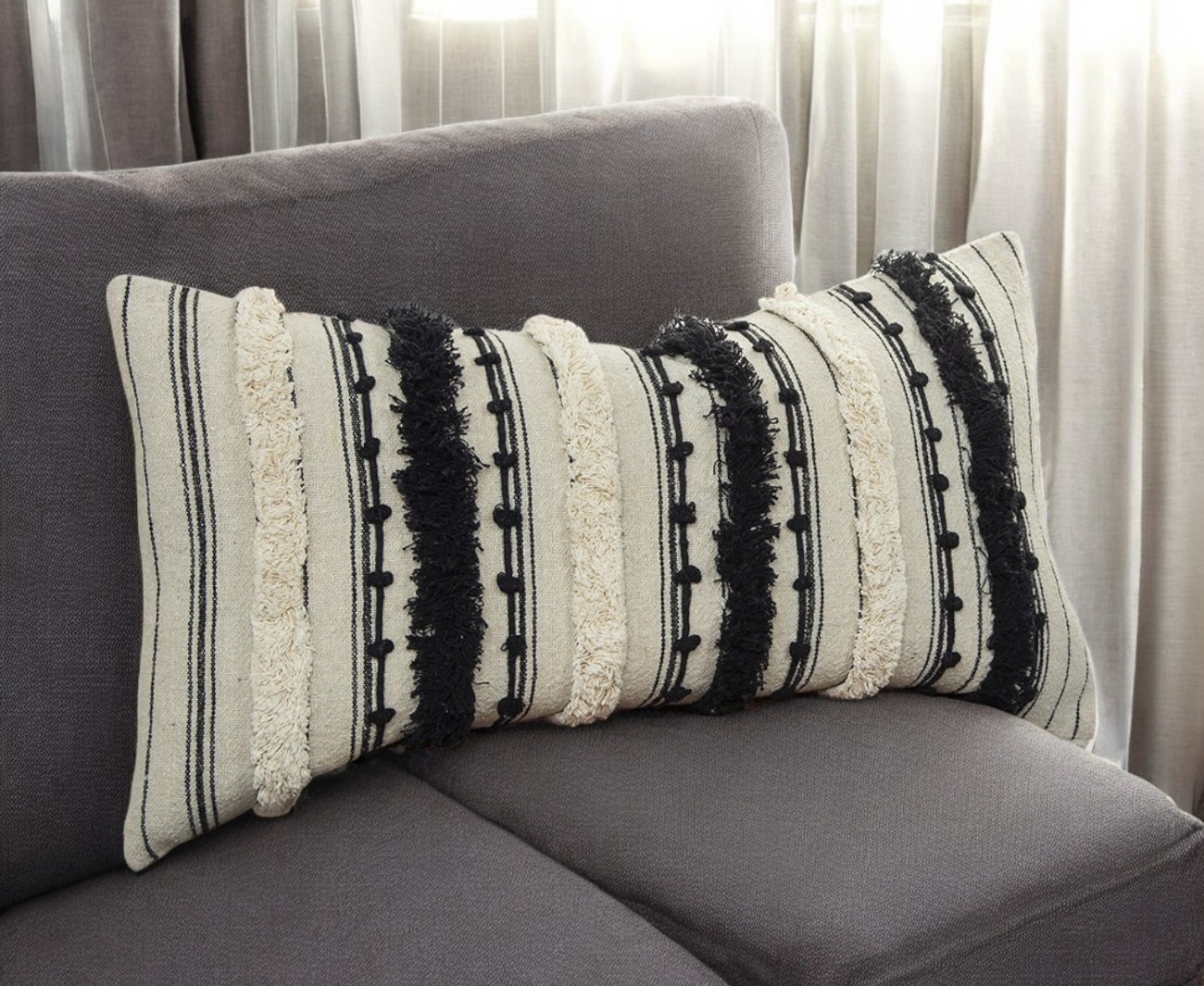 eyelash fringe textured lumbar pillow, black eyelash fringe textured lumbar, fringe textured lumbar pillow, beige black eyelash fringe textured, eyelash fringe textured lumbar |