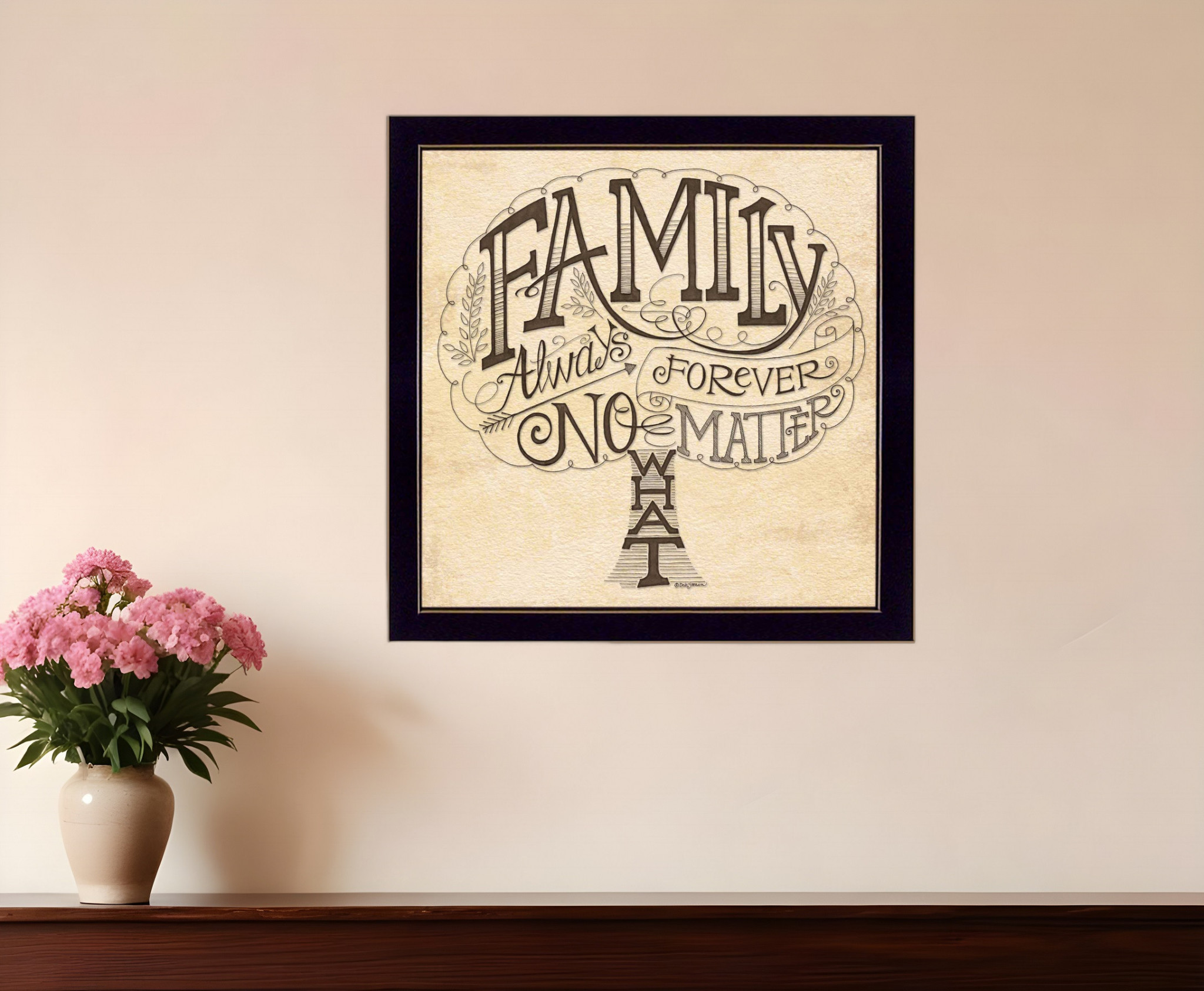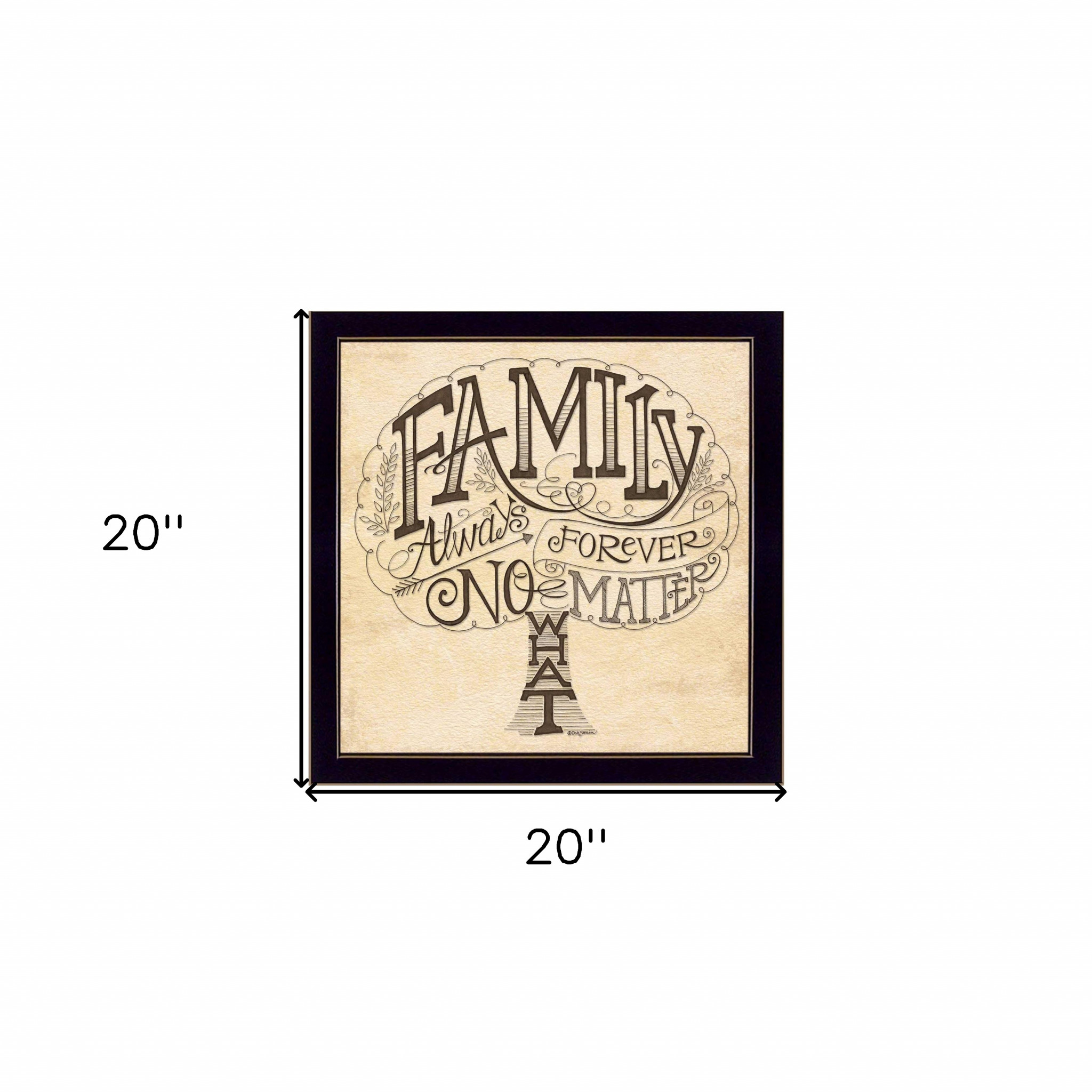Add an air of fashion to your room and rejuvenate the space with this family always and forever black framed print wall art. This print is a visual artistic expression that allows you to decorate your space in style. Reproduced for you on paper, this hanging decorative accent will be a trendy and fashionable way to dress your walls. Adding this hanging wall art to your space to make your room feel more finished and attractive. Instantly liven up your space with this art that brings color and dimension to your walls. 20-inch H x 20-inch W x 1-inch D