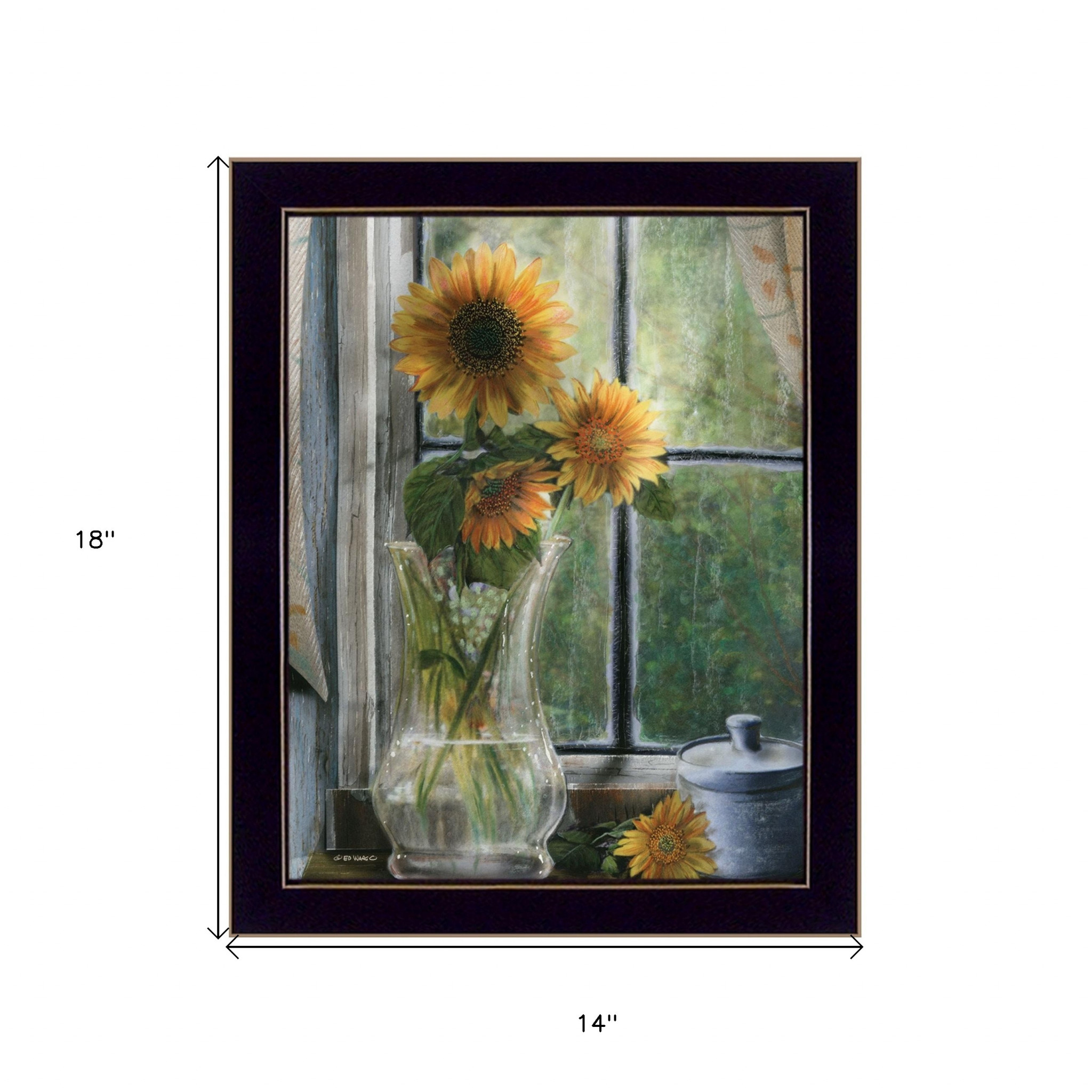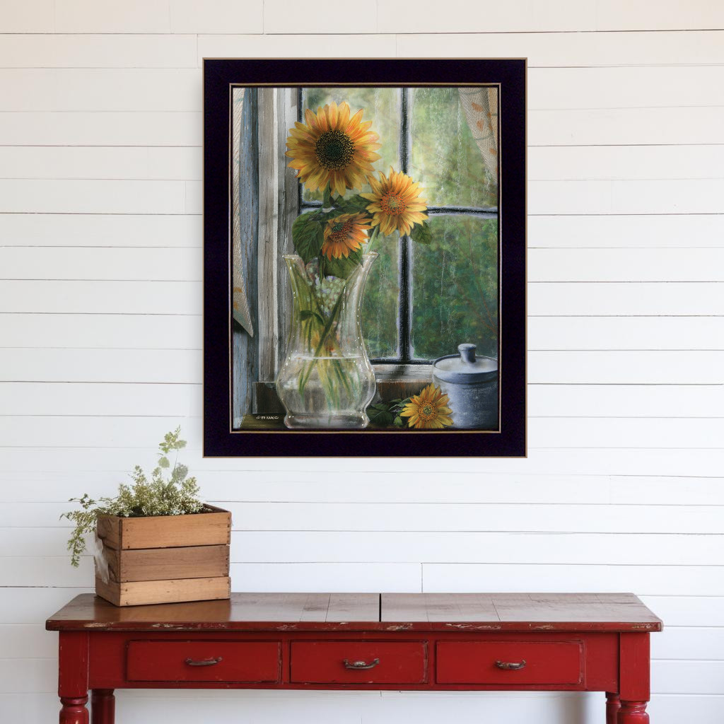 glass vase, sunflower, crocks, window, window sill, den, family room, livingroom, Ed Wargo, framed art, art, wall decor, decor, artwork, poster, print, mdf, framed decor, framed poster |