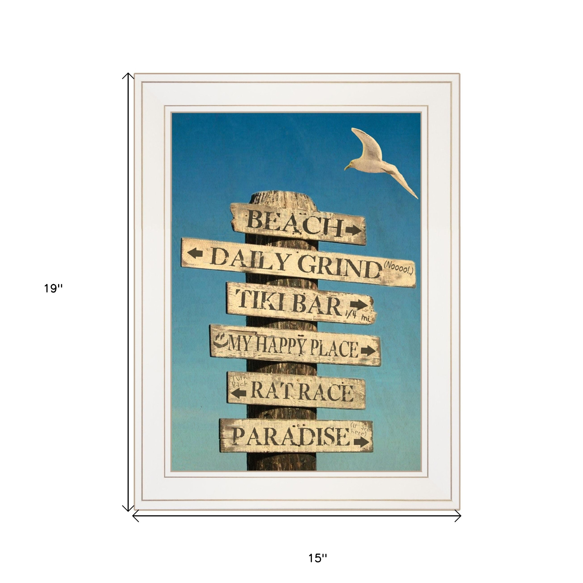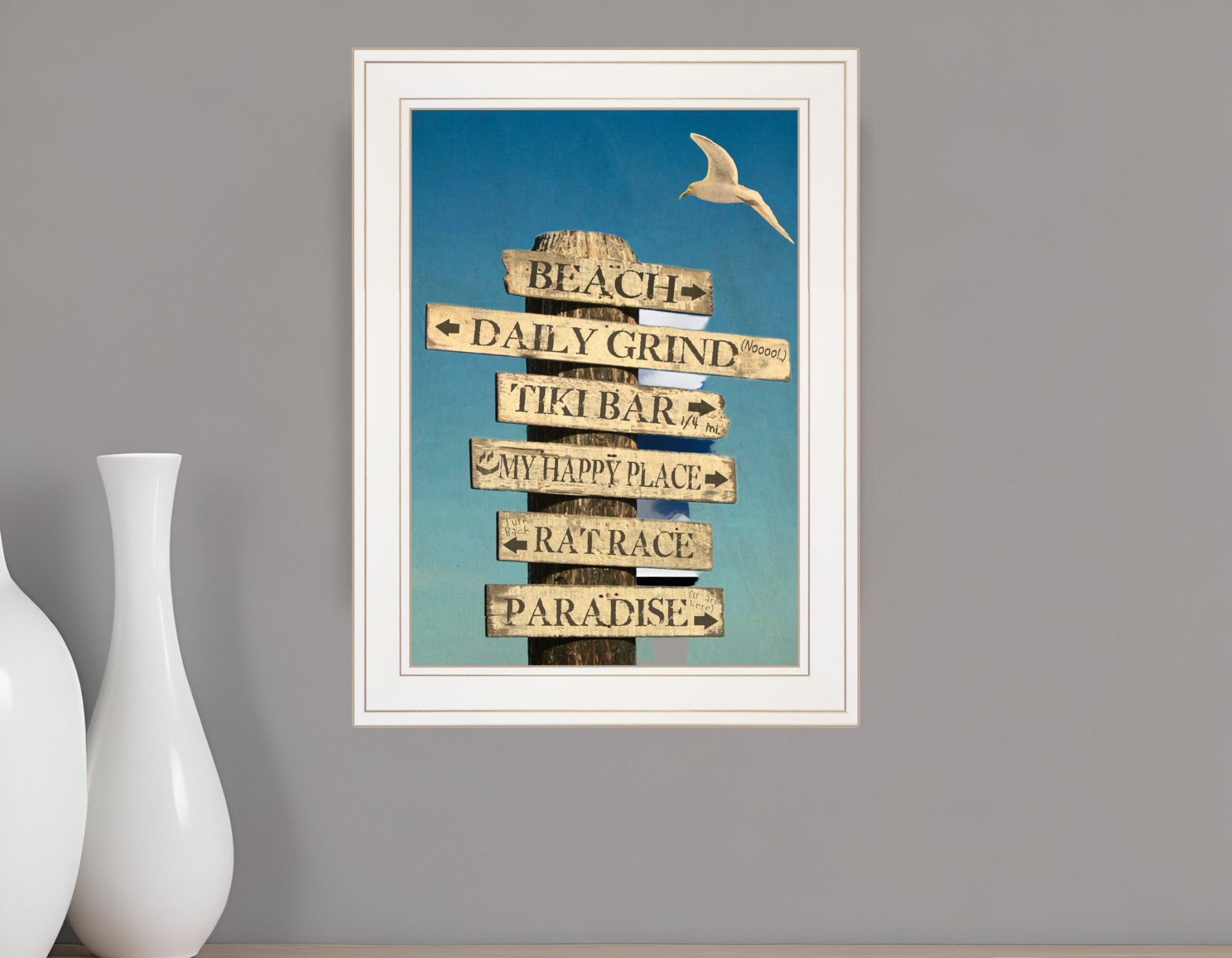 The beach directional white framed print wall art is the perfect decorative accessory for your home. This print is a visual artistic expression that allows you to decorate your space in style. Reproduced for you on paper, this hanging decorative accent will be a trendy and fashionable way to dress your walls. Adding this hanging wall art to your space to make your room feel more finished and attractive. Instantly liven up your space with this art that brings color and dimension to your walls. 19-inch H x 15-inch W x 1-inch D