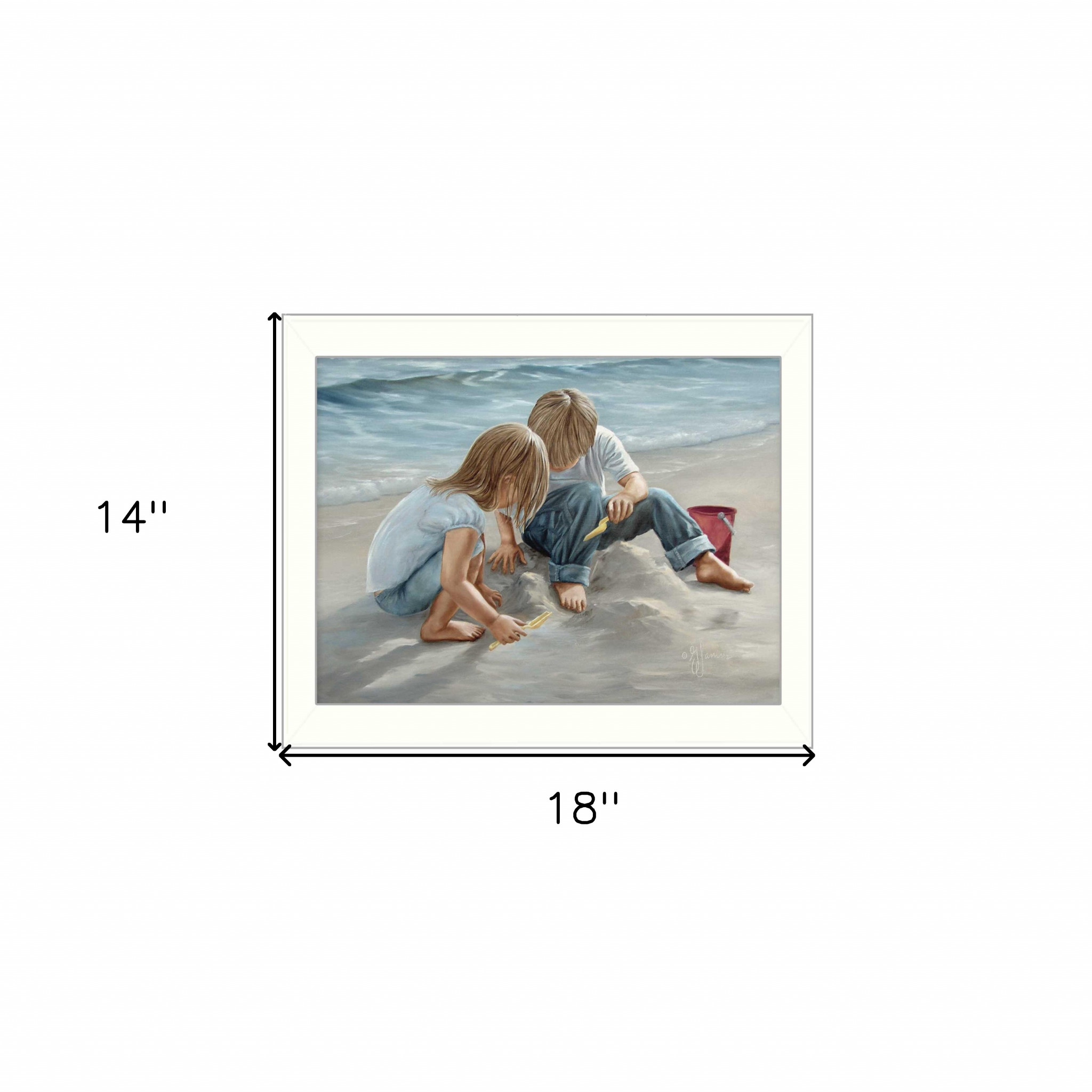 Add an air of fashion to your room and rejuvenate the space with this sand castle builders 1 white framed print wall art. This print is a visual artistic expression that allows you to decorate your space in style. Reproduced for you on paper, this hanging decorative accent will be a trendy and fashionable way to dress your walls. Adding this hanging wall art to your space to make your room feel more finished and attractive. Instantly liven up your space with this art that brings color and dimension to your walls. 18-inch H x 14-inch W x 1-inch D