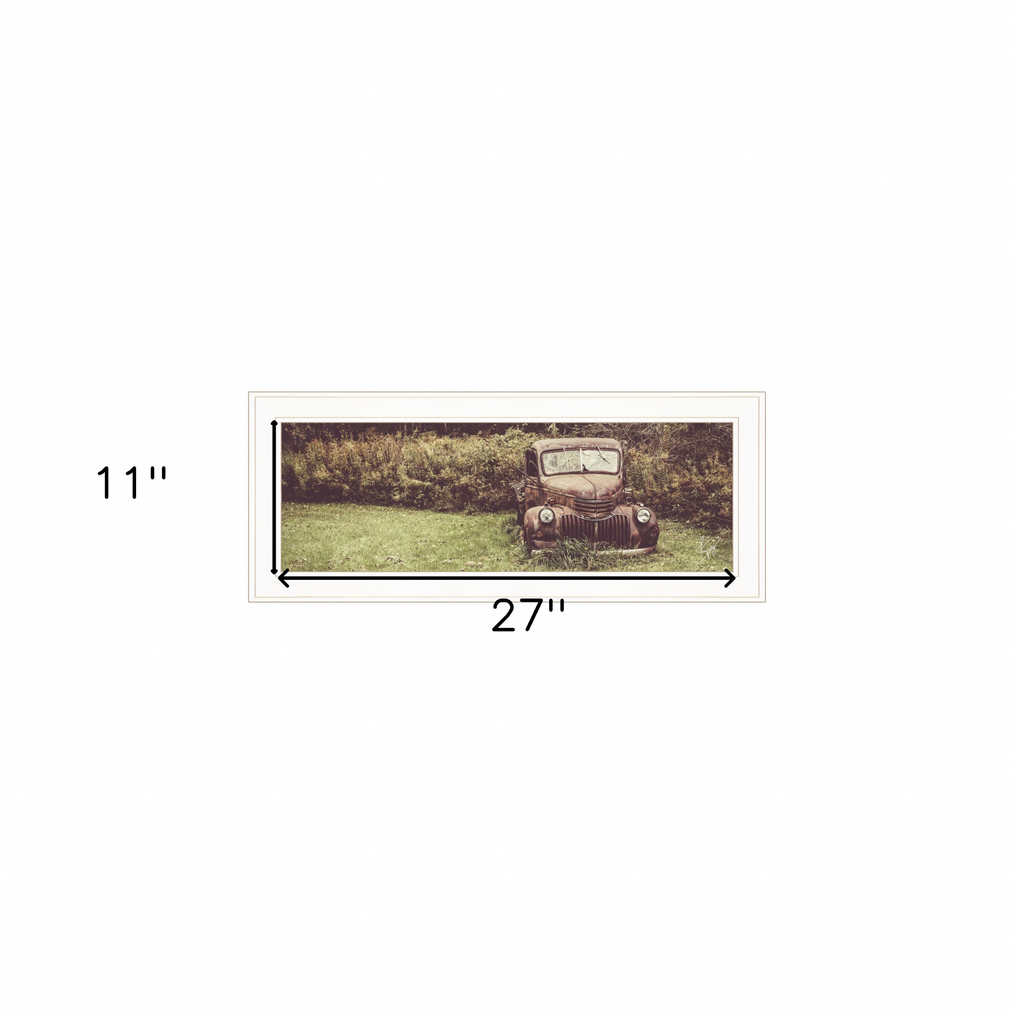 This rusty clearing 1 white framed print wall art will add a beautiful decorative accent to your decor. This transportation inspired wall art features a old car icon and will bring a refreshing look and perspective to your walls. This print is a visual artistic expression that allows you to decorate your space in style. Reproduced for you on paper, this hanging decorative accent will be a trendy and fashionable way to dress your walls. Hang on your wall to add some up to date fashion and decoration. Utilize this opportunity to create a focal point in the room with this fabulous wall decor option. 11-inch H x 27-inch W x 1-inch D