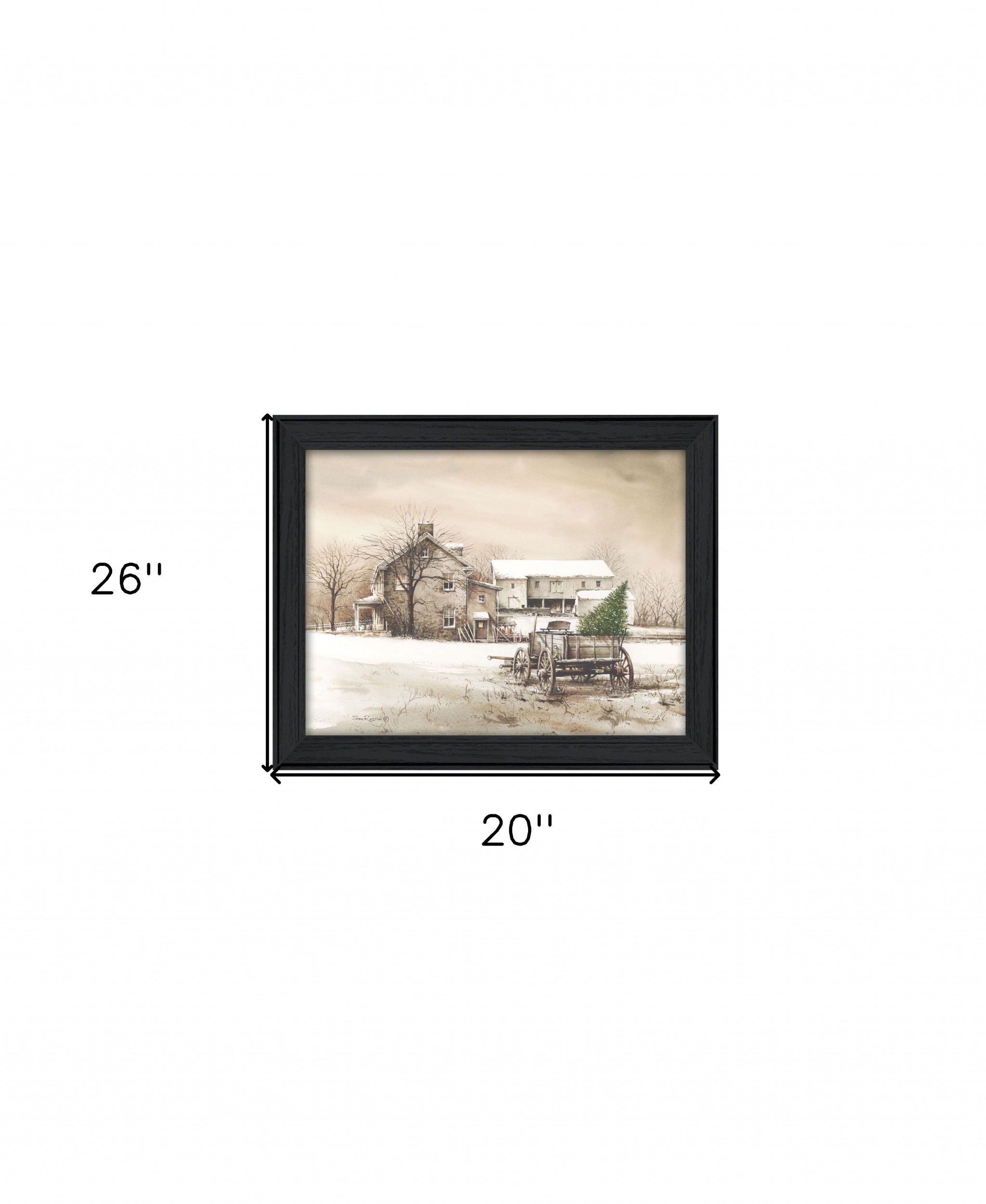Add some christmas cheer to your space with this bringing home the tree 1 black framed print wall art. This print is a visual artistic expression that allows you to decorate your space in style. Reproduced for you on paper, this hanging decorative accent will be a trendy and fashionable way to dress your walls. Adding this hanging wall art to your space to make your room feel more finished and attractive. Instantly liven up your space with this art that brings color and dimension to your walls. 20-inch H x 26-inch W x 1-inch D
