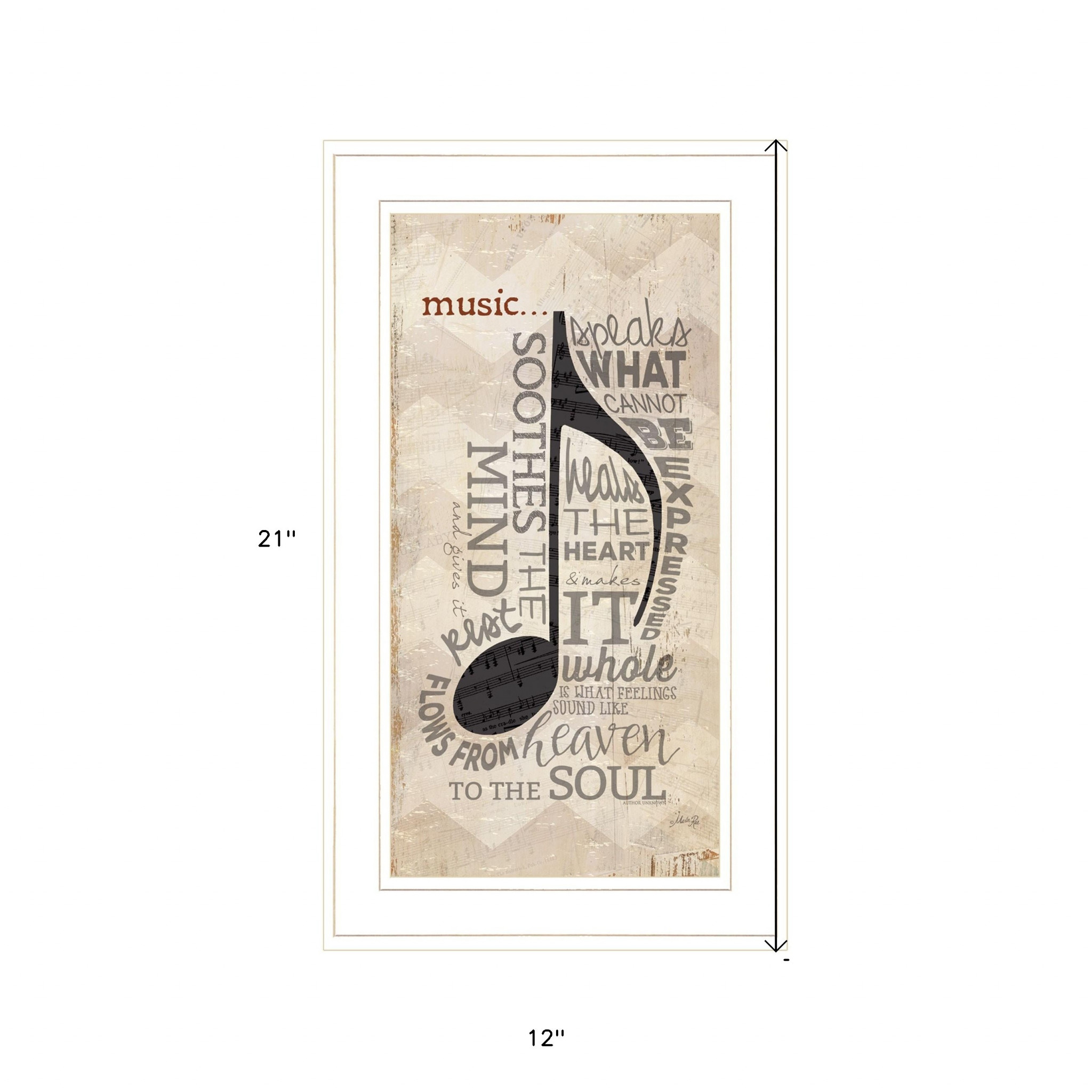 The music 4 white framed print wall art is the perfect decorative accessory for your home. This print is a visual artistic expression that allows you to decorate your space in style. Reproduced for you on paper, this hanging decorative accent will be a trendy and fashionable way to dress your walls. Hang on your wall to add some up to date fashion and decoration. Utilize this opportunity to create a focal point in the room with this fabulous wall decor option. 21-inch H x 12-inch W x 1-inch D