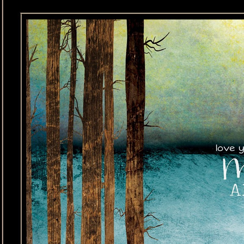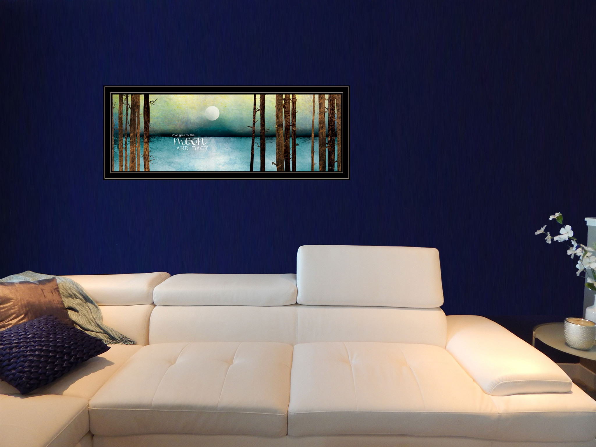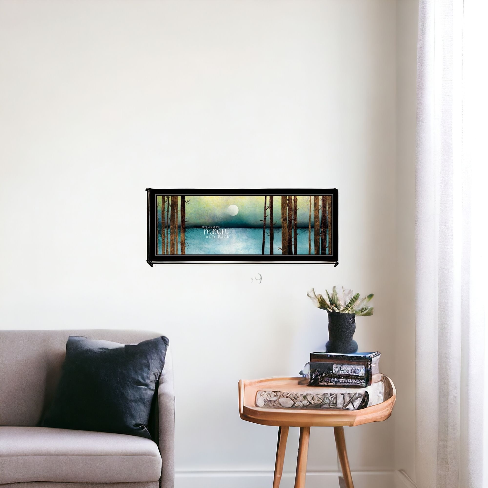 Unique and decorative, this love you to the moon and back 1 black framed print wall art will leave a lasting impression. This print is a visual artistic expression that allows you to decorate your space in style. Reproduced for you on paper, this hanging decorative accent will be a trendy and fashionable way to dress your walls. Hang on your wall to add some up to date fashion and decoration. Utilize this opportunity to create a focal point in the room with this fabulous wall decor option. 15-inch H x 39-inch W x 1-inch D