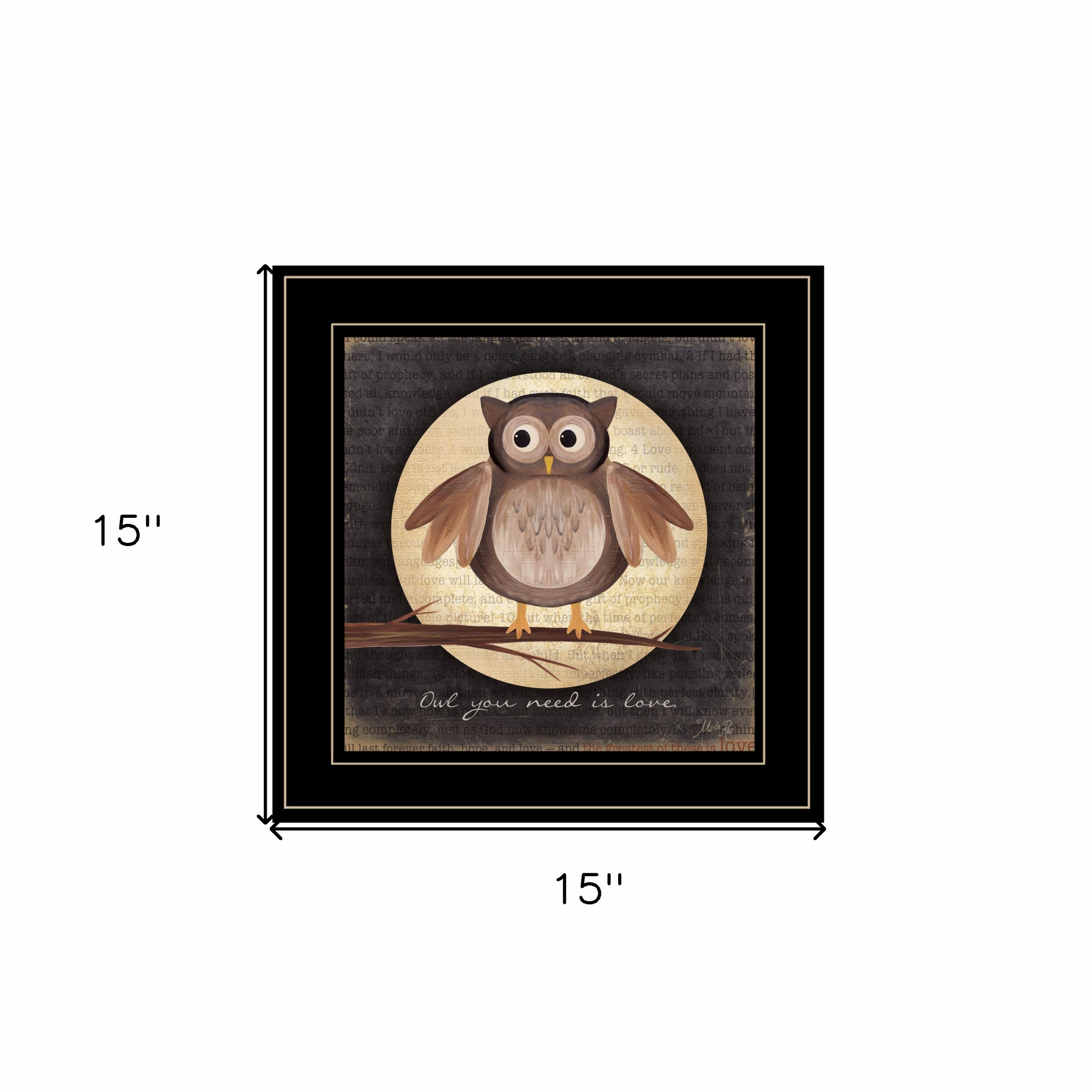 Bring some sizzle to your space with this eye-catching owl you need is love 2 black framed print wall art. Add a sense of the woods, mountain or lodge lifestyle to your walls with this outdoorsy owl wall art. This print is a visual artistic expression that allows you to decorate your space in style. Reproduced for you on paper, this hanging decorative accent will be a trendy and fashionable way to dress your walls. Adding this hanging wall art to your space to make your room feel more finished and attractive. Utilize this opportunity to create a focal point in the room with this fabulous wall decor option. 15-inch H x 15-inch W x 1-inch D