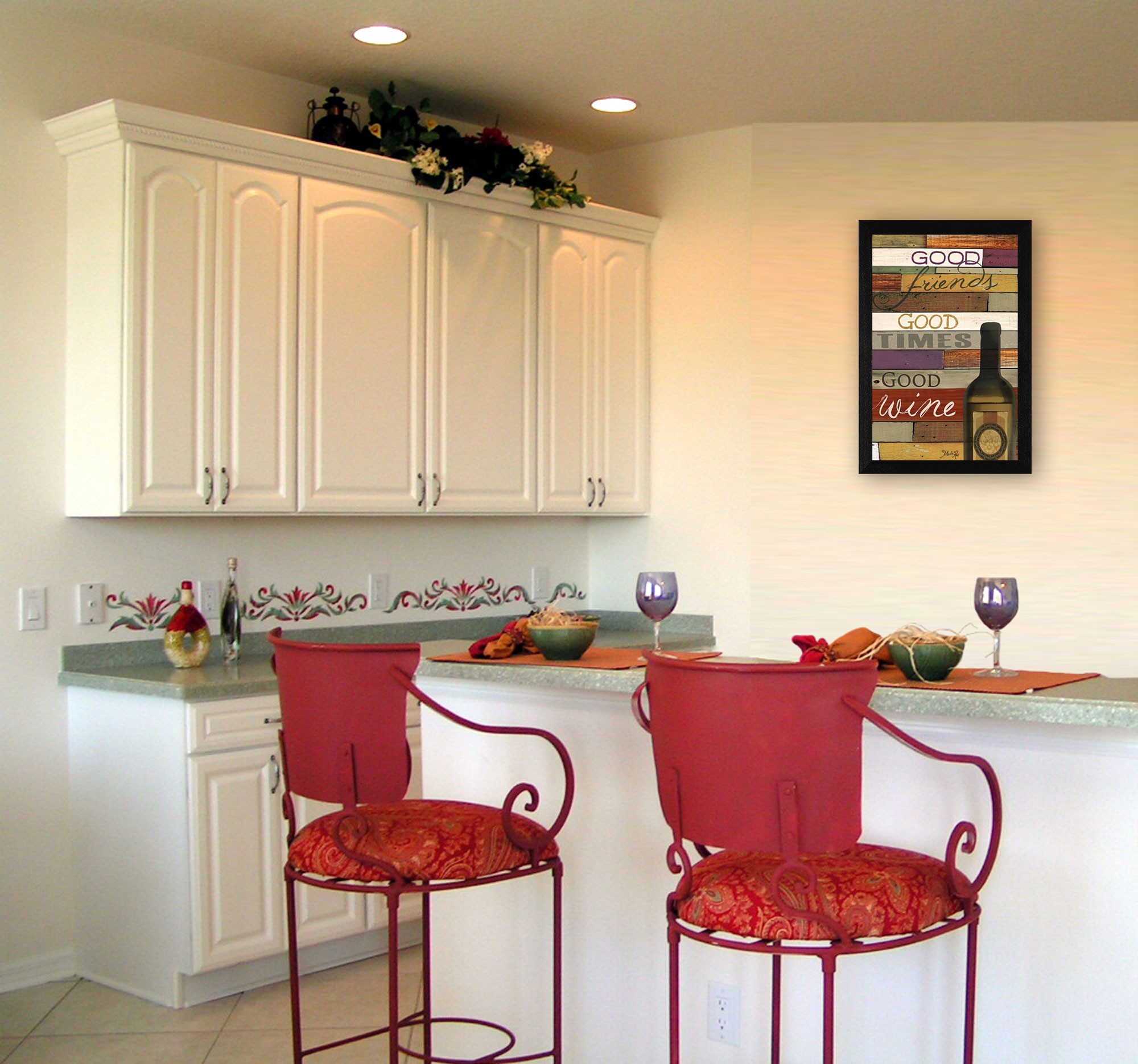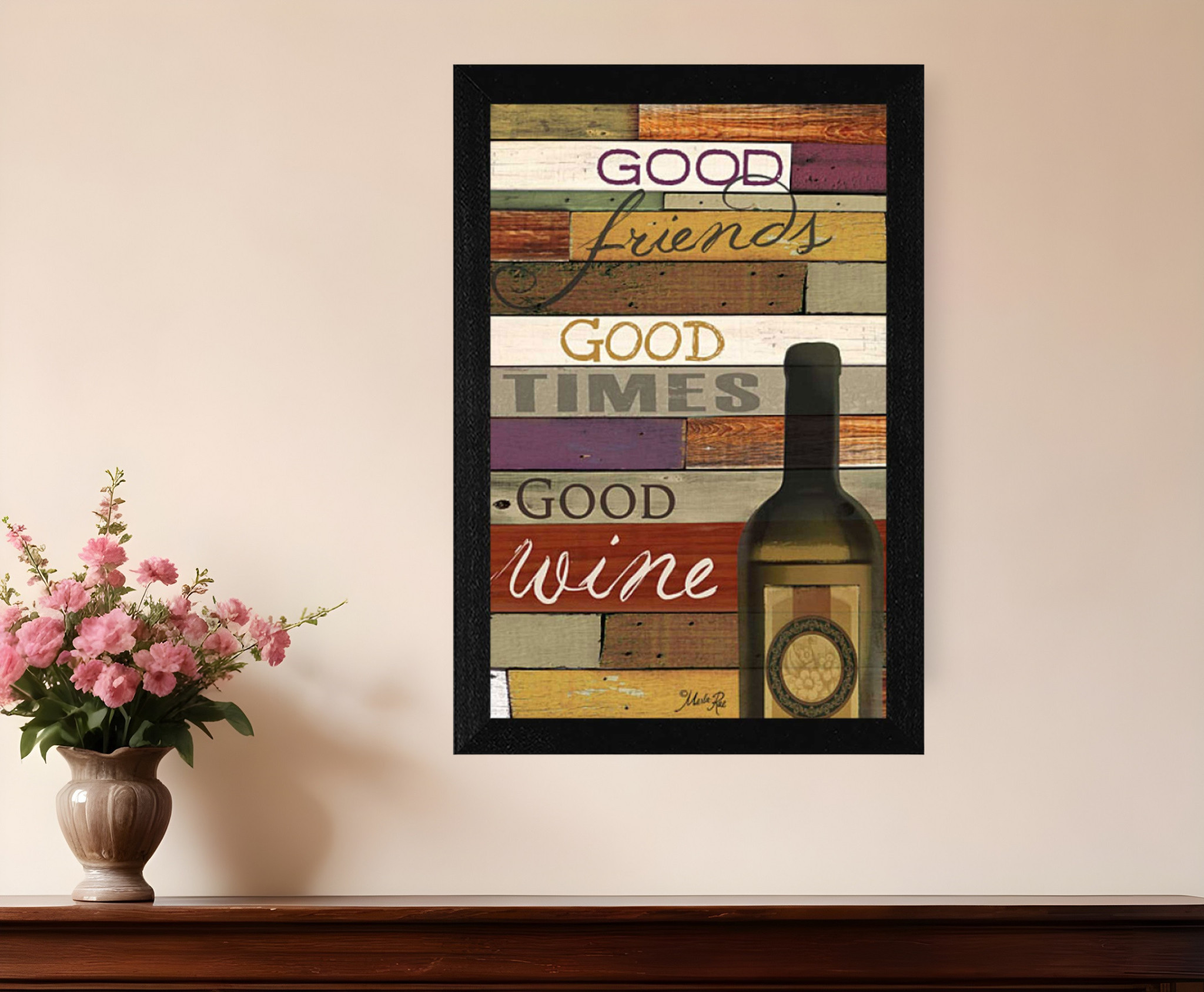 Bring some sizzle to your space with this eye-catching good wine 2 black framed print wall art. This print is a visual artistic expression that allows you to decorate your space in style. Reproduced for you on paper, this hanging decorative accent will be a trendy and fashionable way to dress your walls. Hang on your wall to add some up to date fashion and decoration. Instantly liven up your space with this art that brings color and dimension to your walls. 20-inch H x 14-inch W x 1-inch D