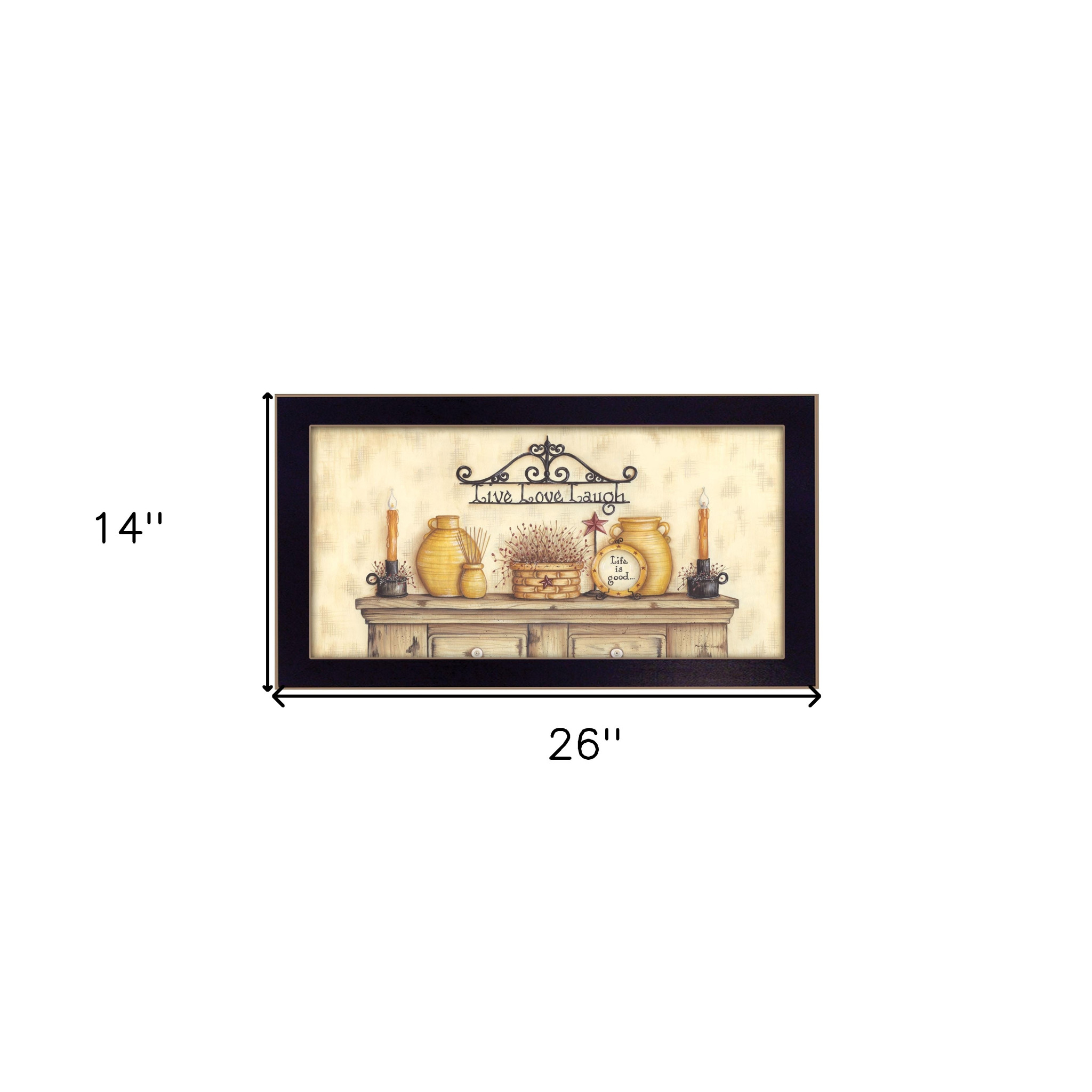 The live love laugh black framed print wall art is the perfect decorative accessory for your home. This print is a visual artistic expression that allows you to decorate your space in style. Reproduced for you on paper, this hanging decorative accent will be a trendy and fashionable way to dress your walls. Hang on your wall to add some up to date fashion and decoration. Utilize this opportunity to create a focal point in the room with this fabulous wall decor option. 14-inch H x 26-inch W x 1-inch D