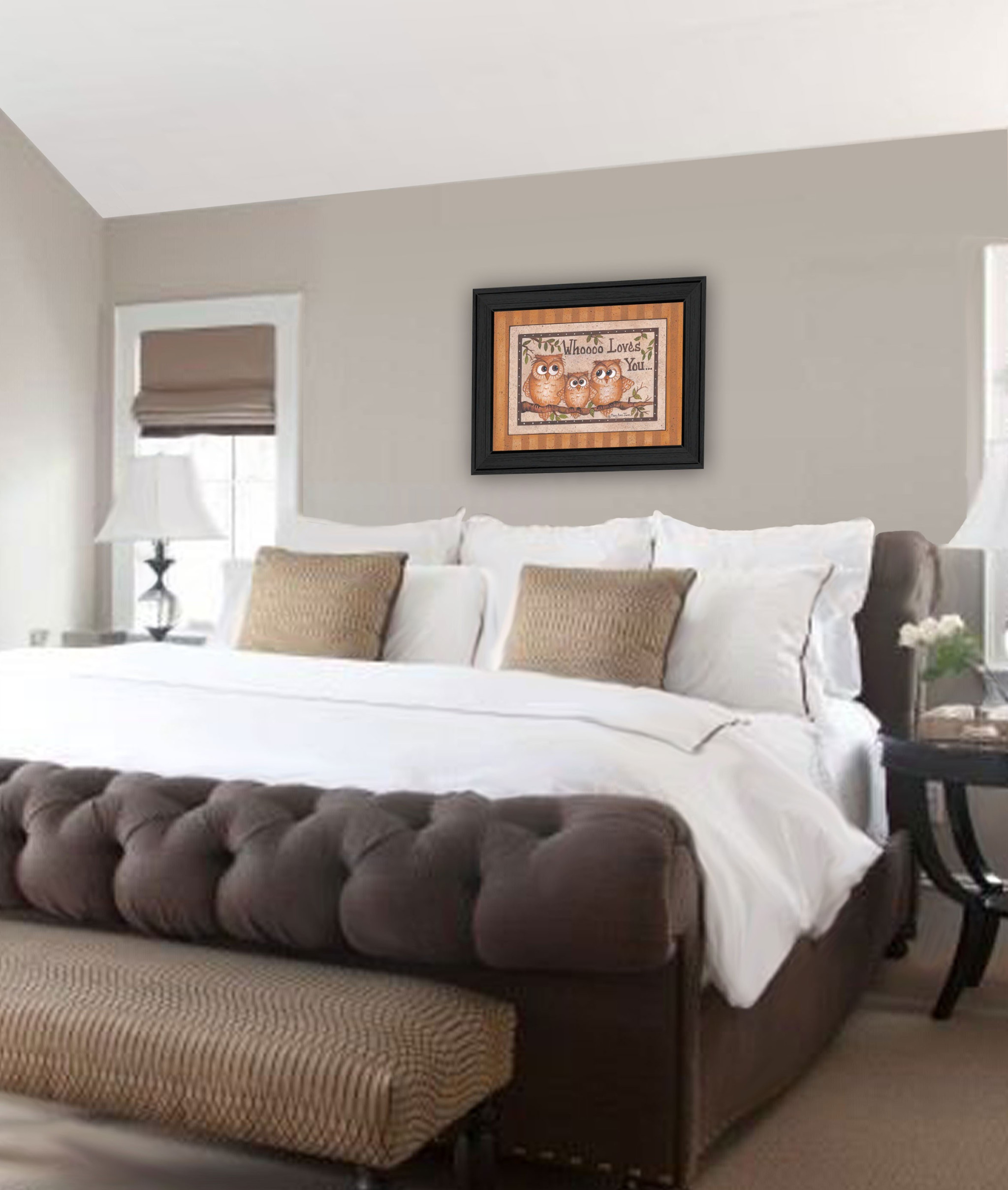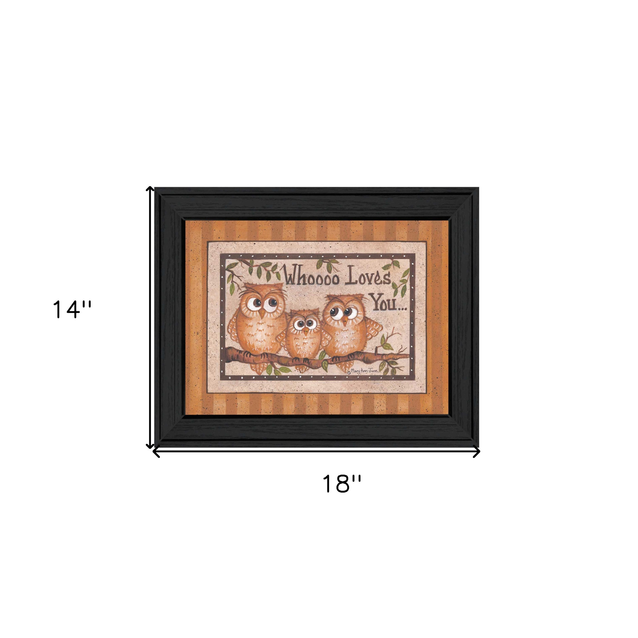 Bring some sizzle to your space with this eye-catching whoooo loves you black framed print wall art. Add a sense of the woods, mountain or lodge lifestyle to your walls with this outdoorsy owl wall art. This print is a visual artistic expression that allows you to decorate your space in style. Reproduced for you on paper, this hanging decorative accent will be a trendy and fashionable way to dress your walls. Adding this hanging wall art to your space to make your room feel more finished and attractive. Instantly liven up your space with this art that brings color and dimension to your walls. 14-inch H x 18-inch W x 1-inch D