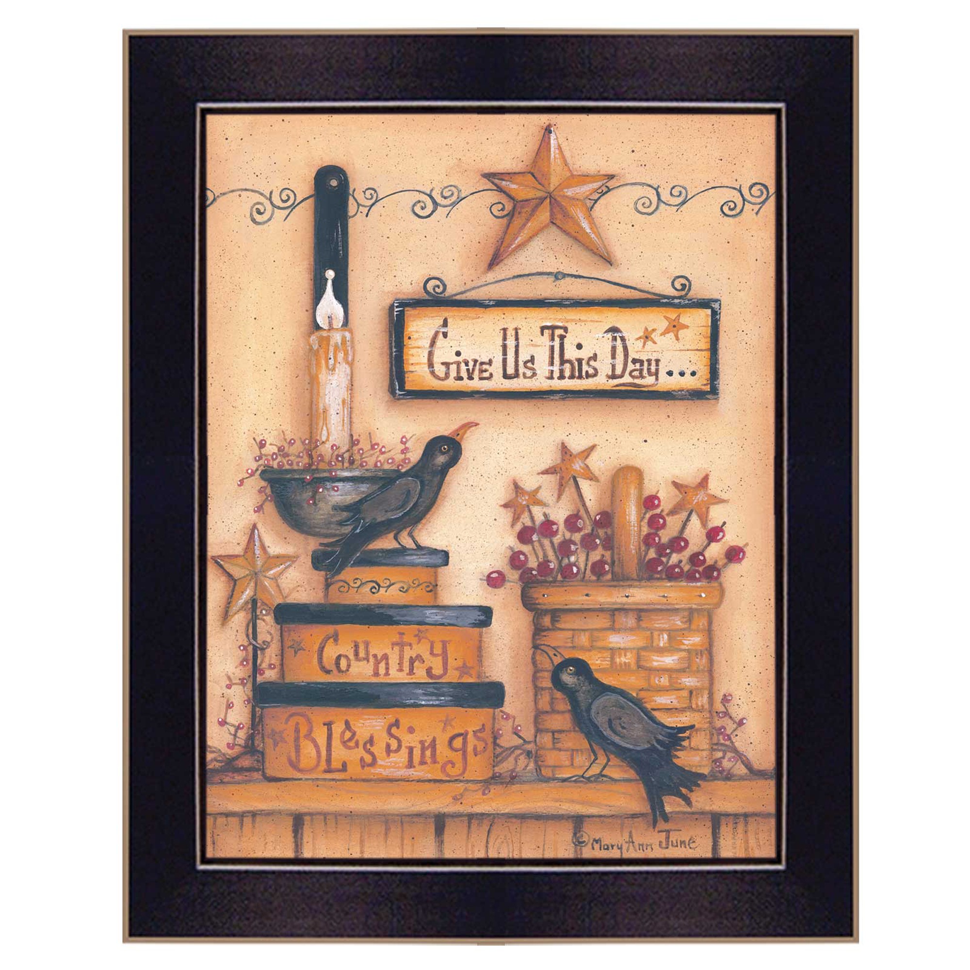 Bring some sizzle to your space with this eye-catching give us this day black framed print wall art. This print is a visual artistic expression that allows you to decorate your space in style. Reproduced for you on paper, this hanging decorative accent will be a trendy and fashionable way to dress your walls. Hang on your wall to add some up to date fashion and decoration. Instantly liven up your space with this art that brings color and dimension to your walls. 14-inch H x 18-inch W x 1-inch D