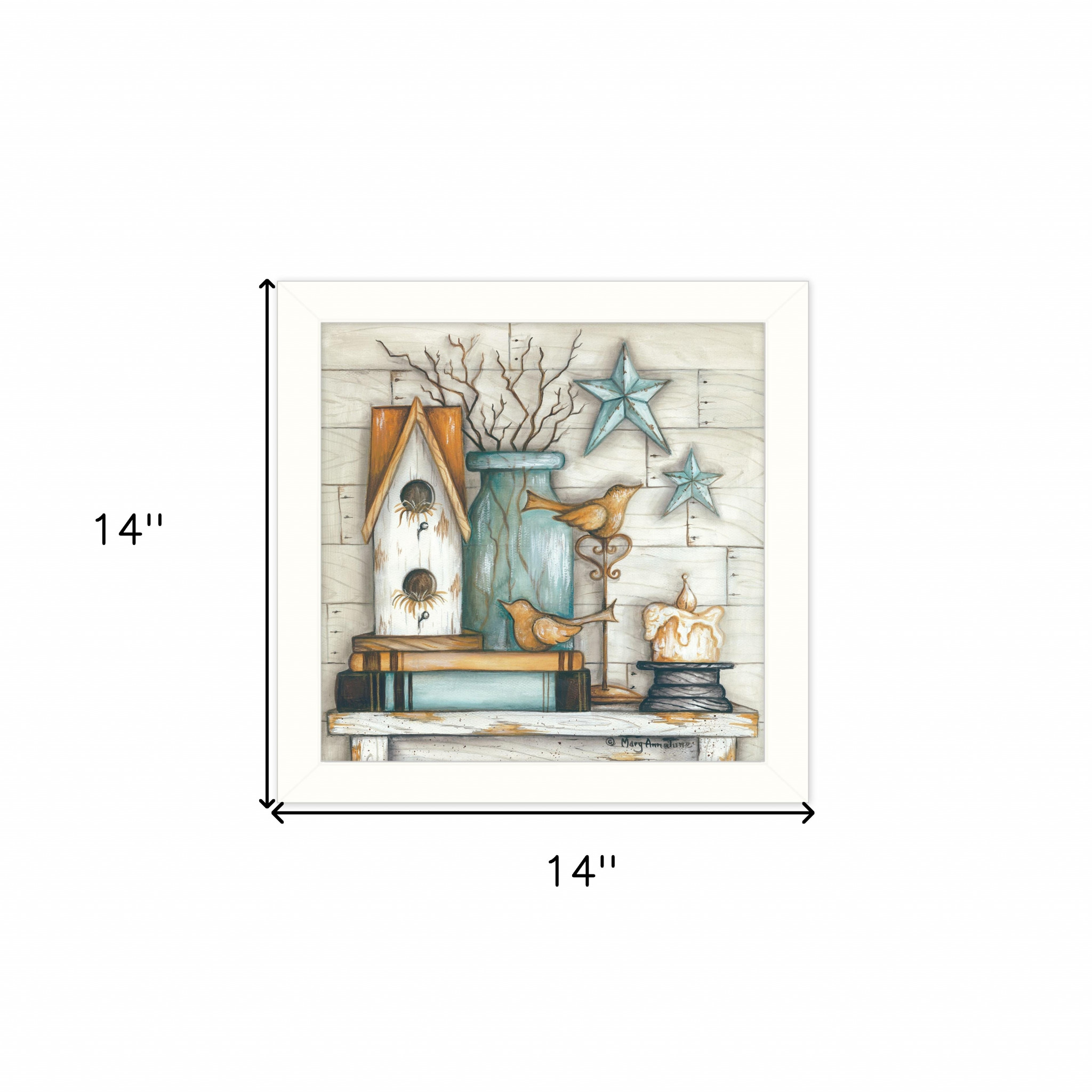 Unique and decorative, this birdhouse on books 2 white framed print wall art will leave a lasting impression. This print is a visual artistic expression that allows you to decorate your space in style. Reproduced for you on paper, this hanging decorative accent will be a trendy and fashionable way to dress your walls. Adding this hanging wall art to your space to make your room feel more finished and attractive. Utilize this opportunity to create a focal point in the room with this fabulous wall decor option. 14-inch H x 14-inch W x 1-inch D