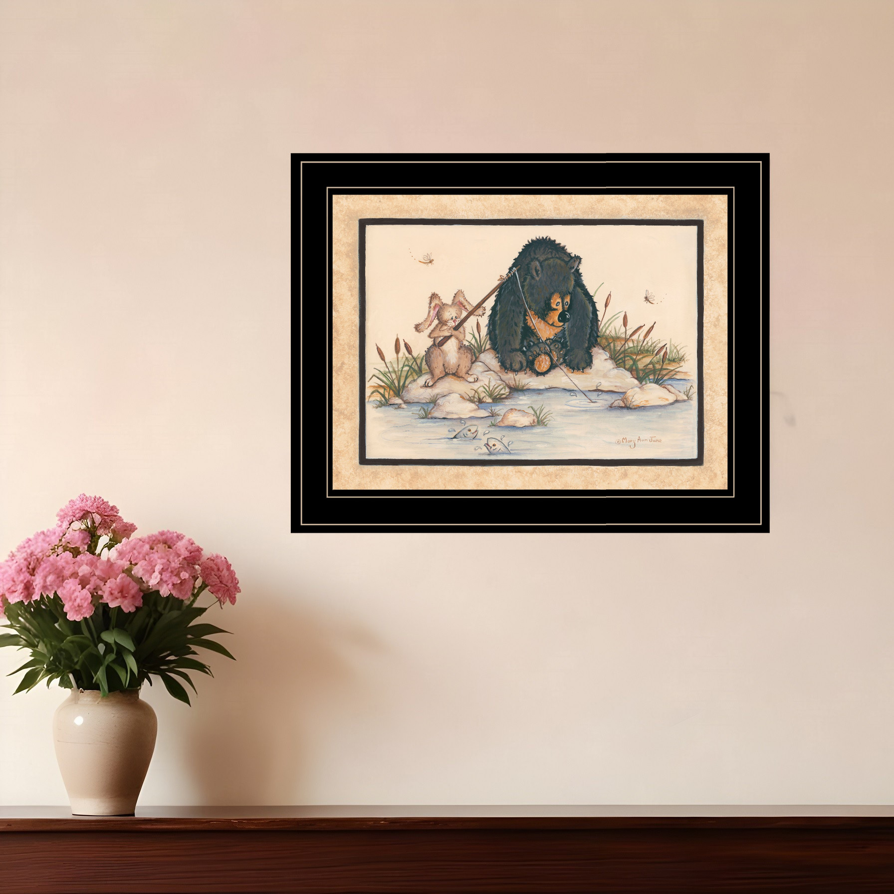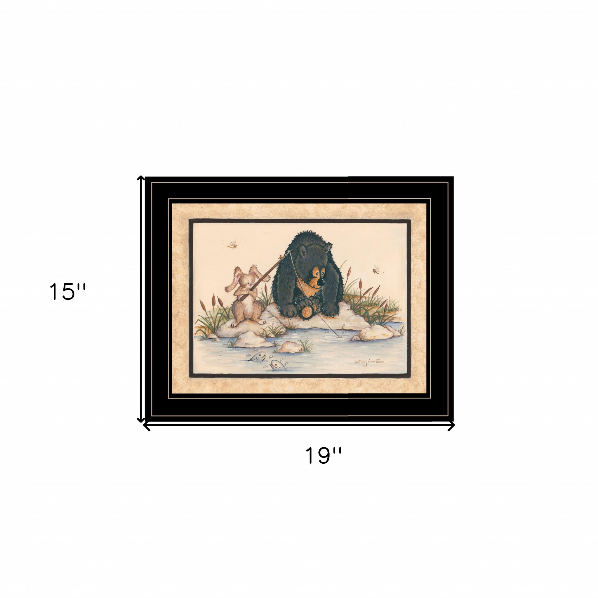 The gone fishing 2 black framed print wall art is the perfect decorative accessory for your home. Update your walls with this woodland animal decor. This print is a visual artistic expression that allows you to decorate your space in style. Reproduced for you on paper, this hanging decorative accent will be a trendy and fashionable way to dress your walls. Hang on your wall to add some up to date fashion and decoration. Utilize this opportunity to create a focal point in the room with this fabulous wall decor option. 15-inch H x 19-inch W x 1-inch D