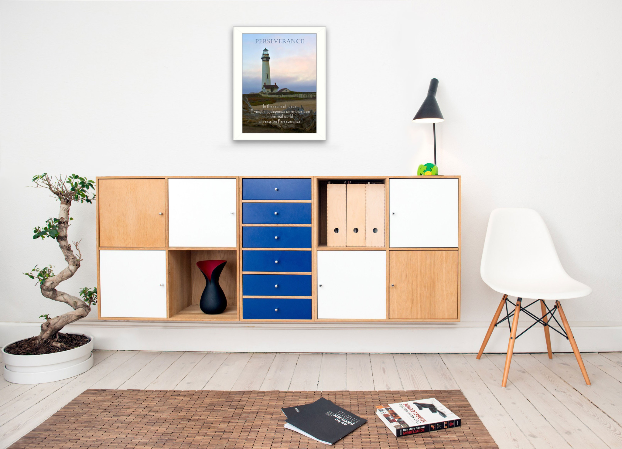 Add an air of fashion to your room and rejuvenate the space with this perseverance 3 white framed print wall art. This print is a visual artistic expression that allows you to decorate your space in style. Reproduced for you on paper, this hanging decorative accent will be a trendy and fashionable way to dress your walls. Hang on your wall to add some up to date fashion and decoration. Utilize this opportunity to create a focal point in the room with this fabulous wall decor option. 14-inch H x 18-inch W x 1.5-inch D