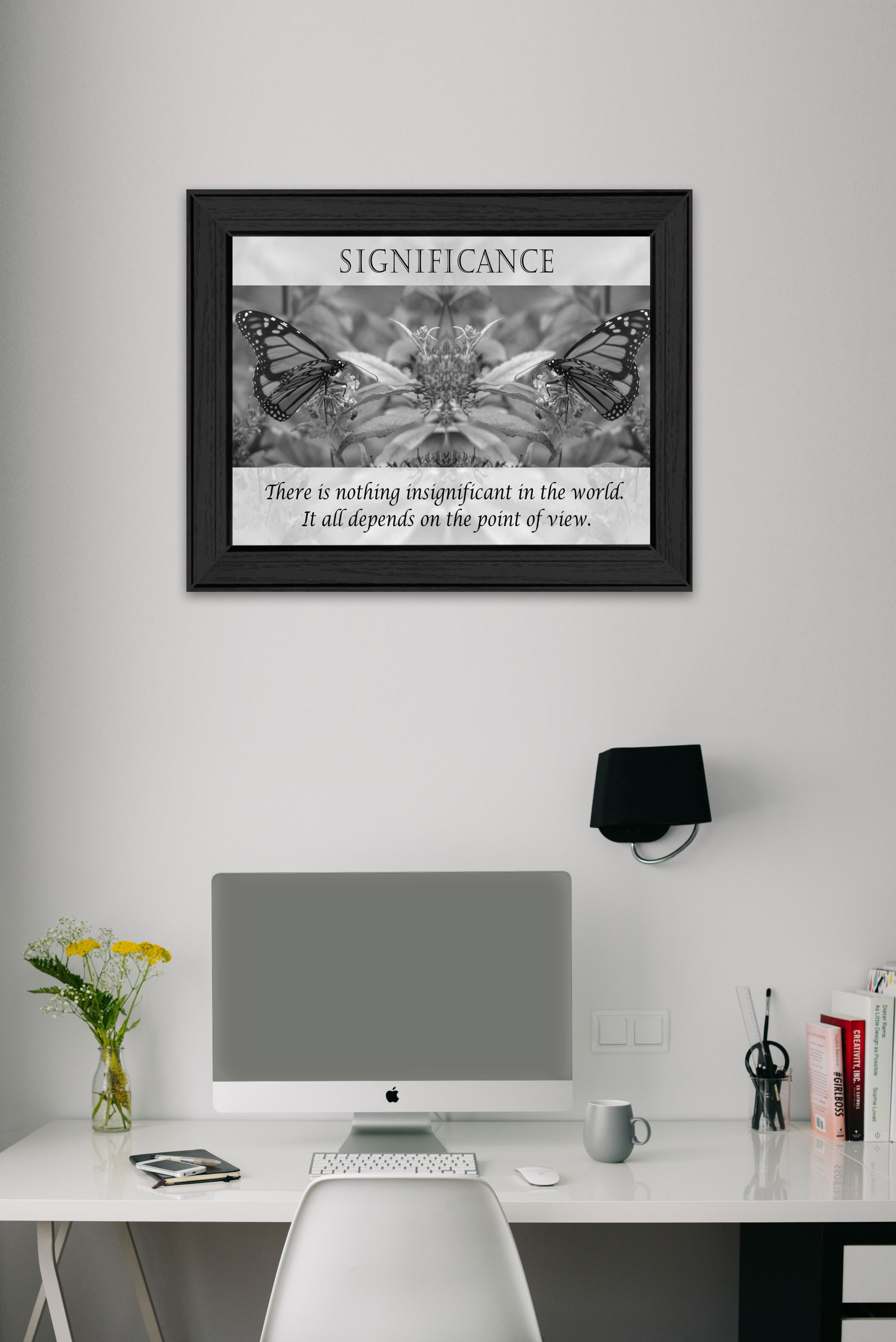Unique and decorative, this significance 5 black framed print wall art will leave a lasting impression. This butterfly inspired art will be a great addition to your space. This print is a visual artistic expression that allows you to decorate your space in style. Reproduced for you on paper, this hanging decorative accent will be a trendy and fashionable way to dress your walls. Adding this hanging wall art to your space to make your room feel more finished and attractive. Utilize this opportunity to create a focal point in the room with this fabulous wall decor option. 18-inch H x 14-inch W x 1.5-inch D