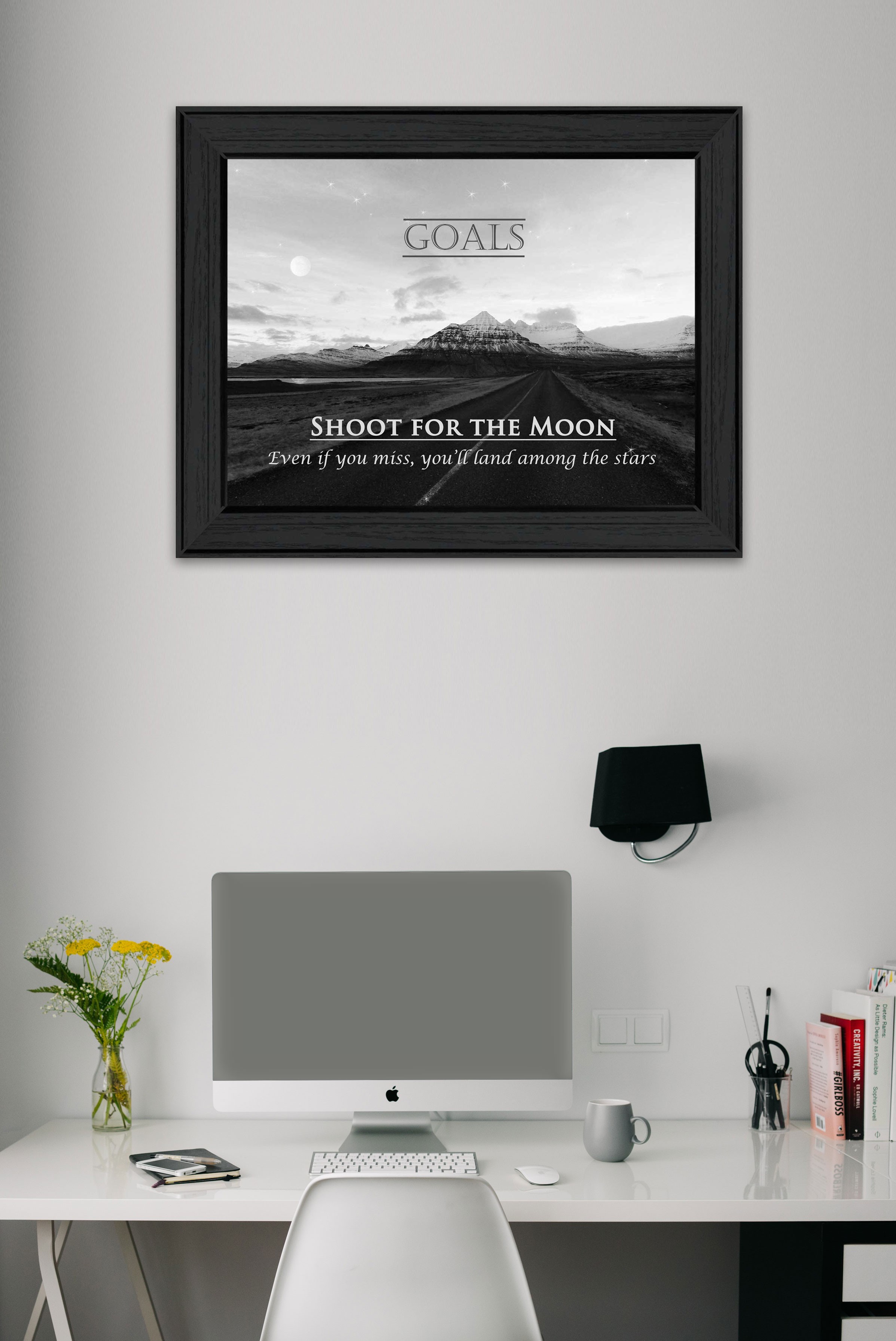Add an air of fashion to your room and rejuvenate the space with this goals 5 black framed print wall art. This print is a visual artistic expression that allows you to decorate your space in style. Reproduced for you on paper, this hanging decorative accent will be a trendy and fashionable way to dress your walls. Adding this hanging wall art to your space to make your room feel more finished and attractive. Utilize this opportunity to create a focal point in the room with this fabulous wall decor option. 15-inch H x 19-inch W x 1.5-inch D