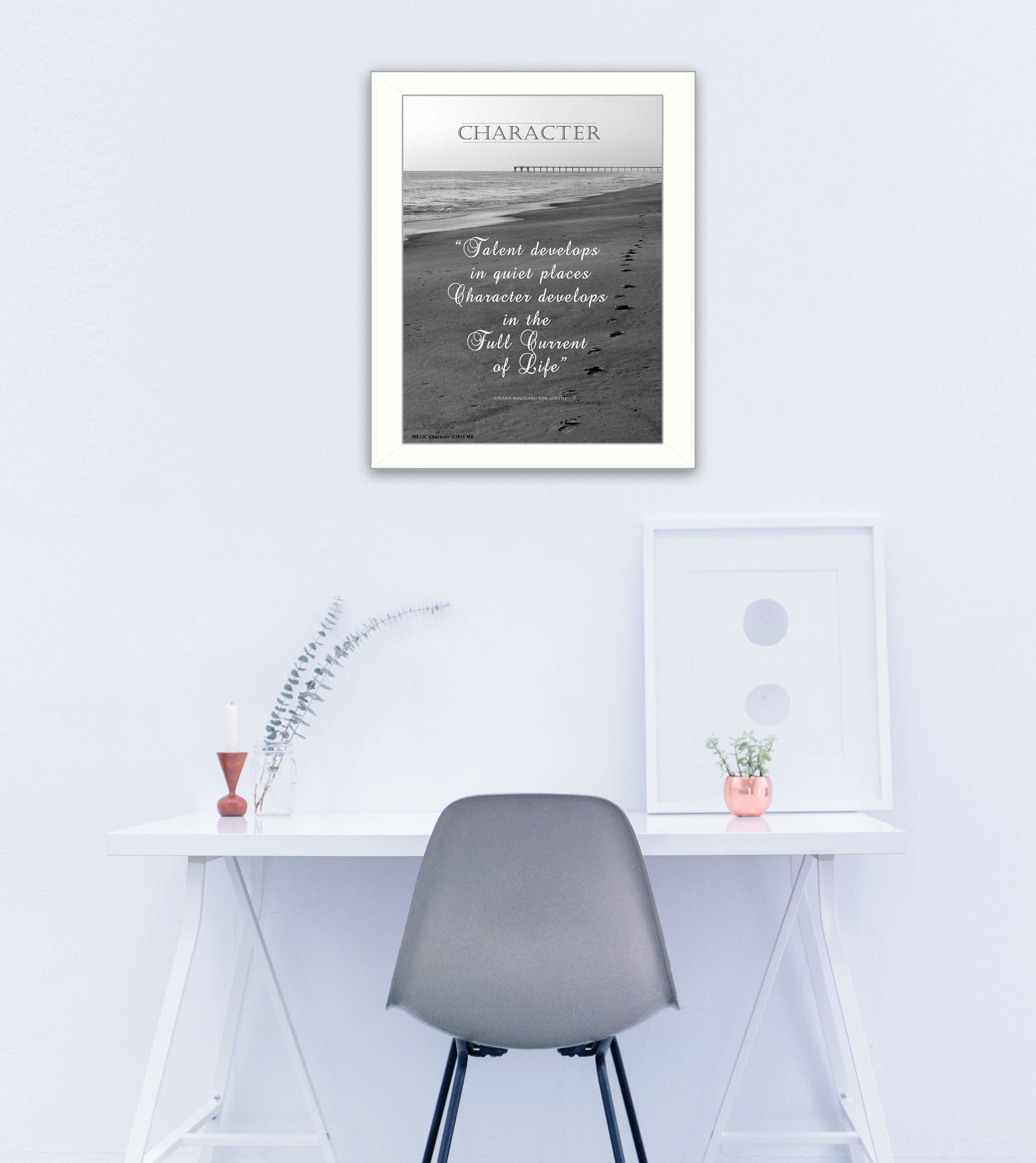 The character 6 white framed print wall art is the perfect decorative accessory for your home. This print is a visual artistic expression that allows you to decorate your space in style. Reproduced for you on paper, this hanging decorative accent will be a trendy and fashionable way to dress your walls. Hang on your wall to add some up to date fashion and decoration. Utilize this opportunity to create a focal point in the room with this fabulous wall decor option. 14-inch H x 18-inch W x 1.5-inch D