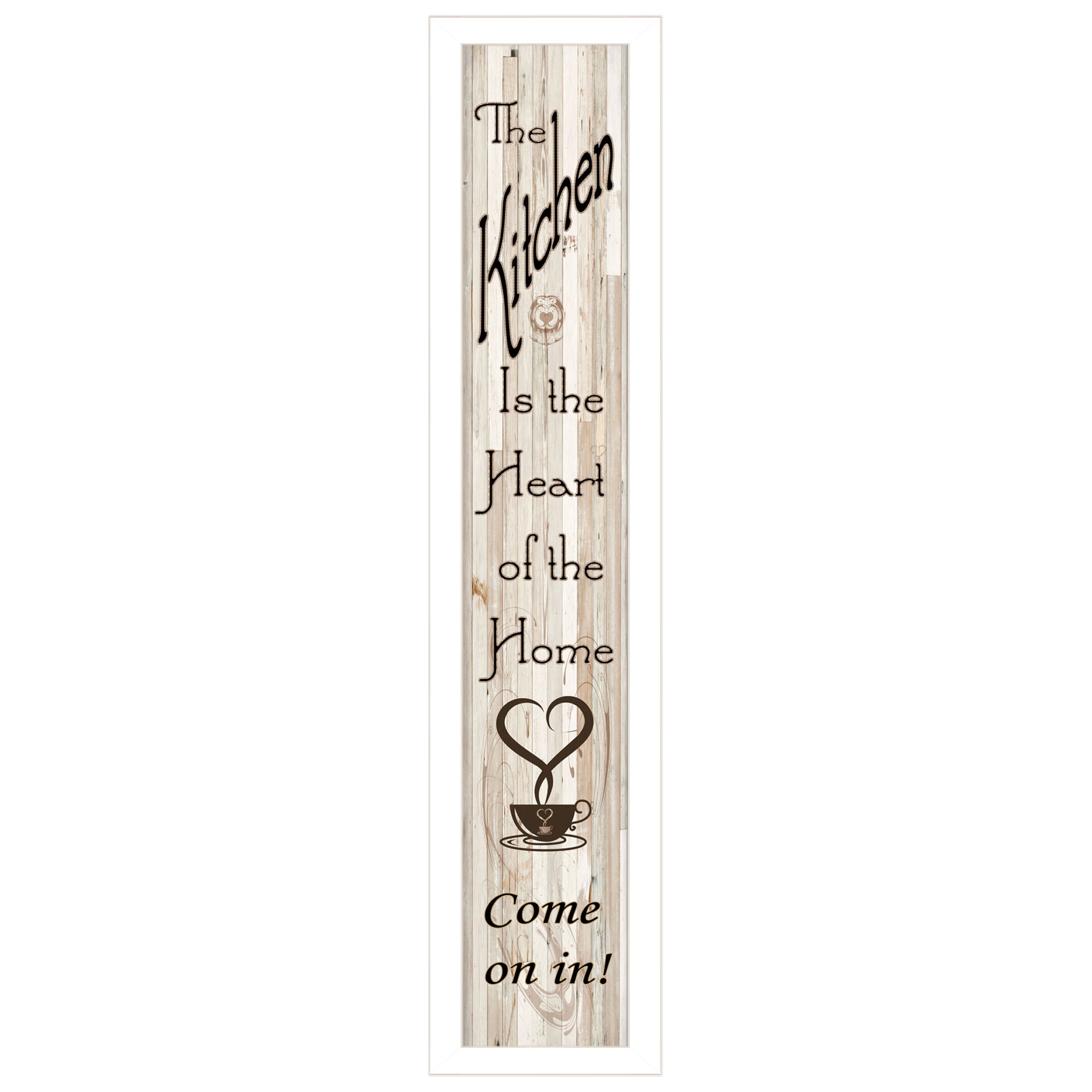 Add an air of fashion to your room and rejuvenate the space with this kitchen is the heart of the home 10 white framed print kitchen wall art. This print is a visual artistic expression that allows you to decorate your space in style. Reproduced for you on paper, this hanging decorative accent will be a trendy and fashionable way to dress your walls. Adding this hanging wall art to your space to make your room feel more finished and attractive. Instantly liven up your space with this art that brings color and dimension to your walls. 32-inch H x 7-inch W x 1-inch D