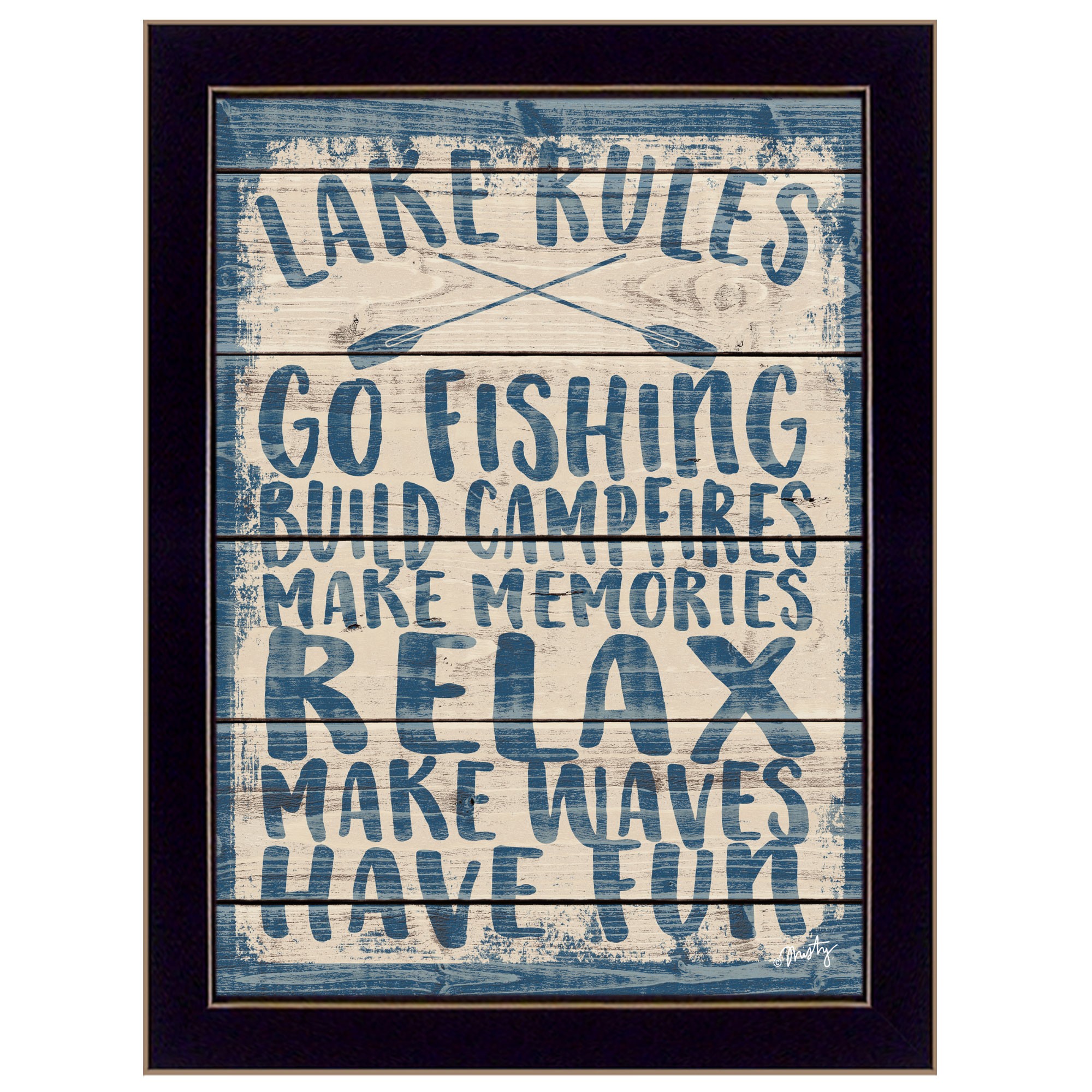 The lake rules 2 black framed print wall art is the perfect decorative accessory for your home. This print is a visual artistic expression that allows you to decorate your space in style. Reproduced for you on paper, this hanging decorative accent will be a trendy and fashionable way to dress your walls. Adding this hanging wall art to your space to make your room feel more finished and attractive. Instantly liven up your space with this art that brings color and dimension to your walls. 19-inch H x 15-inch W x 1-inch D