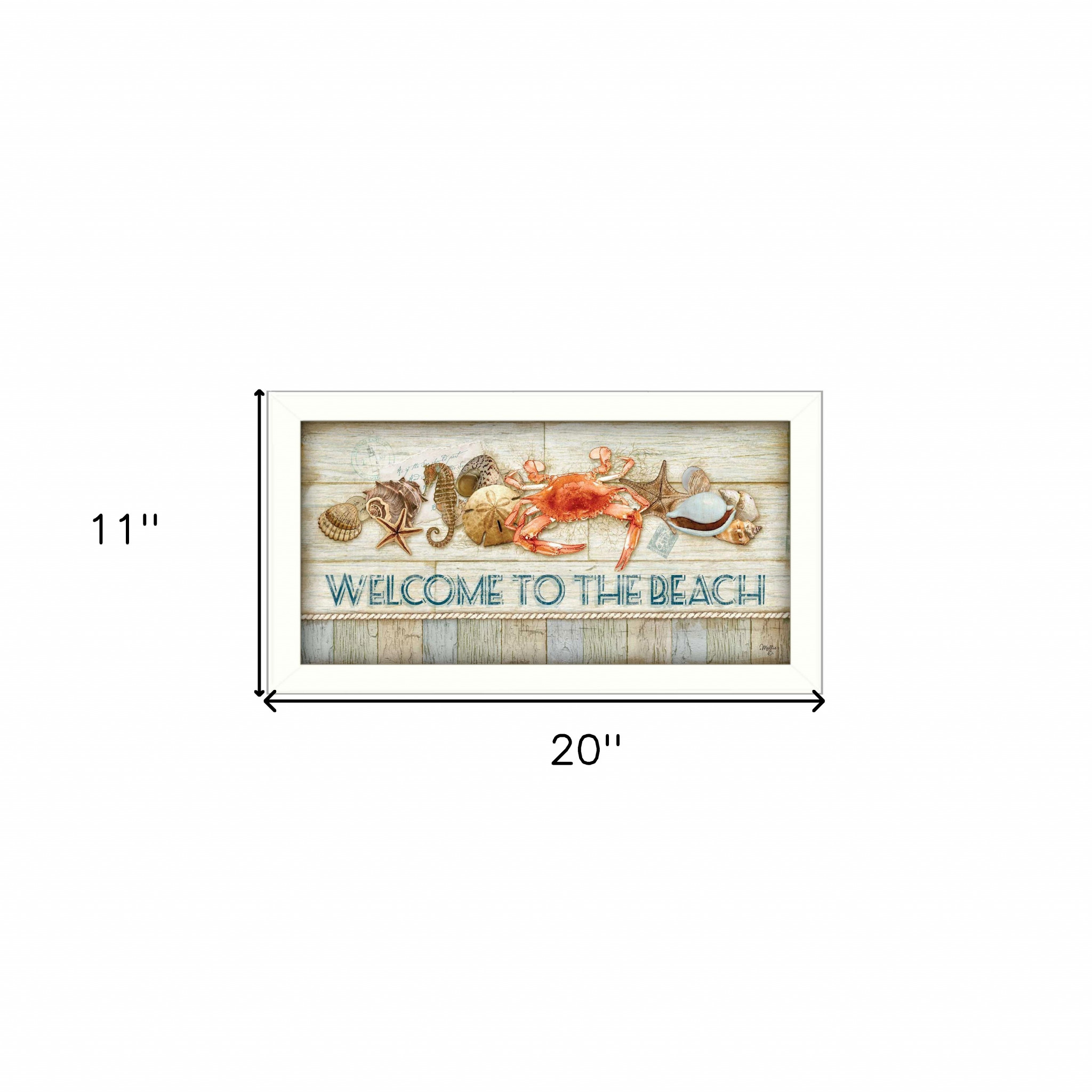 Bring some sizzle to your space with this eye-catching welcome to the beach white framed print wall art. This print is a visual artistic expression that allows you to decorate your space in style. Reproduced for you on paper, this hanging decorative accent will be a trendy and fashionable way to dress your walls. Makes a great addition to your beach house. 11-inch H x 20-inch W x 1-inch D