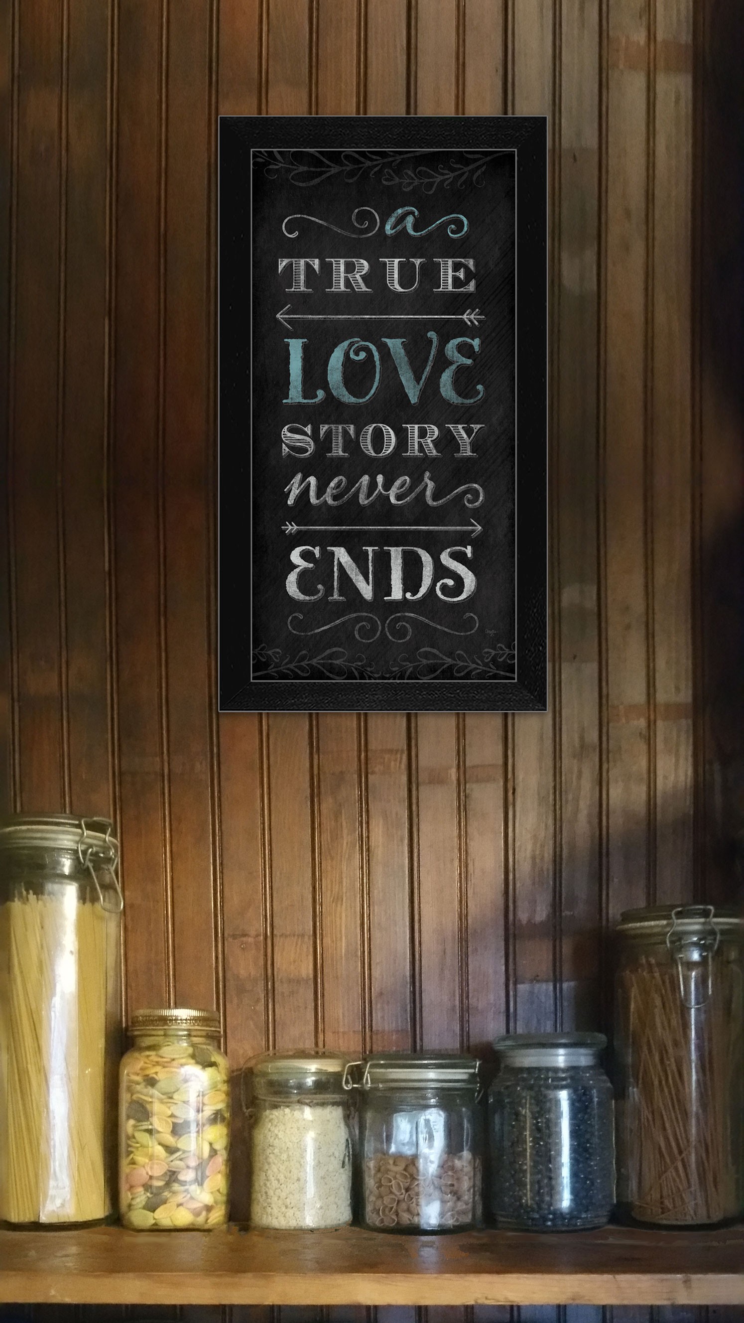 Bring some sizzle to your space with this eye-catching a true love story never ends black framed print wall art. This print is a visual artistic expression that allows you to decorate your space in style. Reproduced for you on paper, this hanging decorative accent will be a trendy and fashionable way to dress your walls. Adding this hanging wall art to your space to make your room feel more finished and attractive. Instantly liven up your space with this art that brings color and dimension to your walls. 20-inch H x 11-inch W x 1-inch D