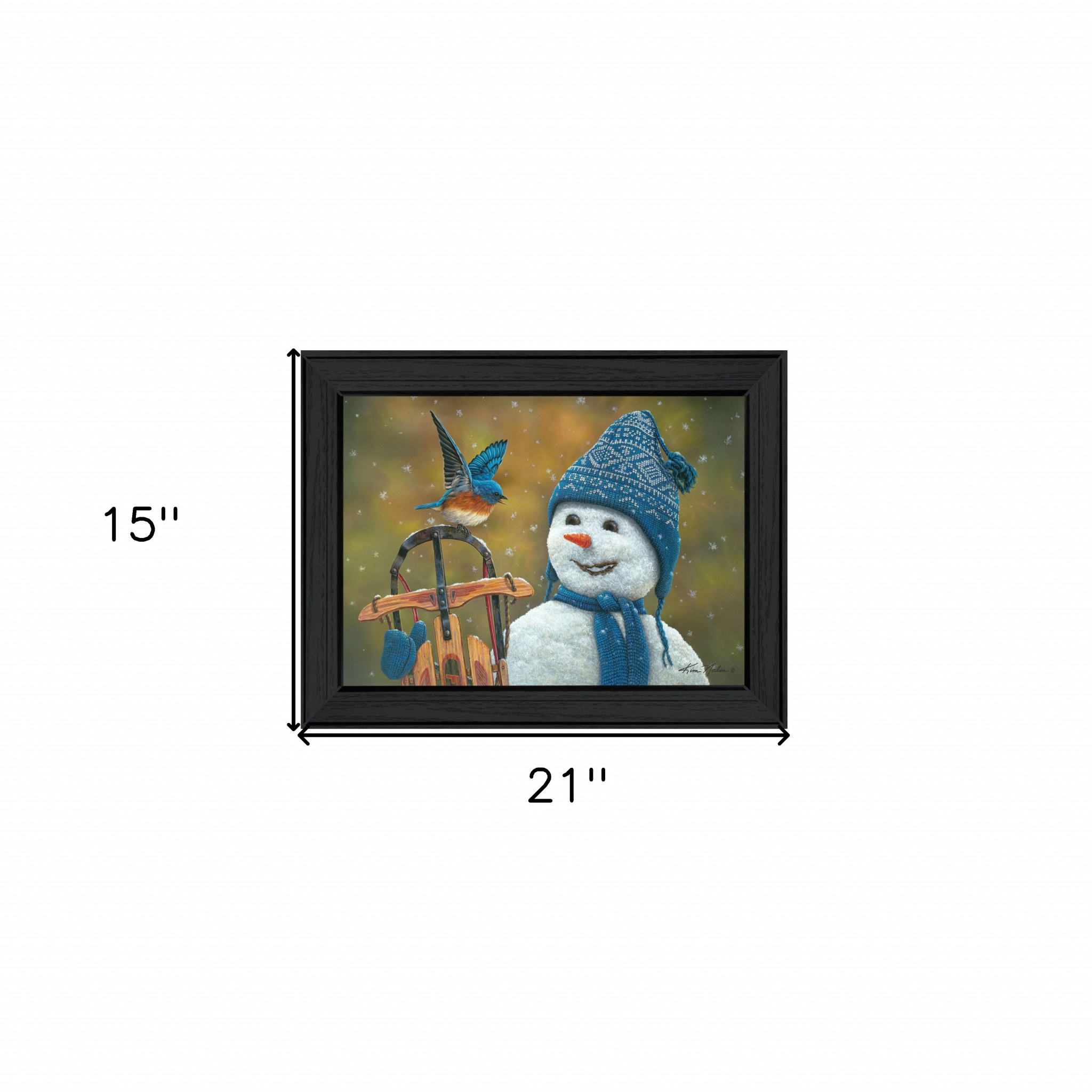 Snowman, Bluebird, Sled, Snow, Winter, den, family room, livingroom, cabin, lodge,, framed art, art, wall decor, decor, artwork, poster, print, mdf, framed decor, framed poster |