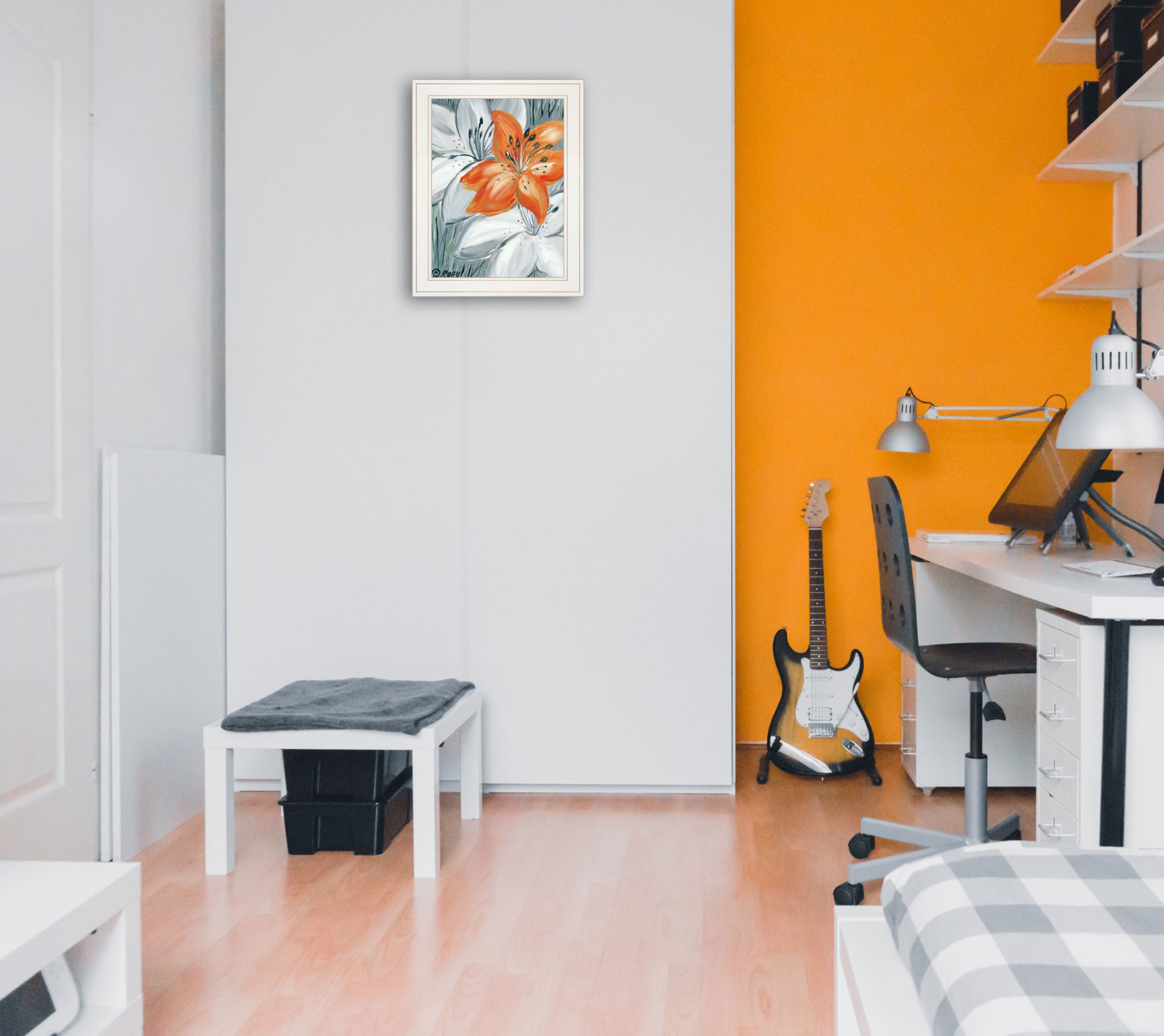 tiger lily orange roey ebert, ready hang framed print white, tiger lily orange, lily orange roey ebert ready, ebert ready hang framed print |