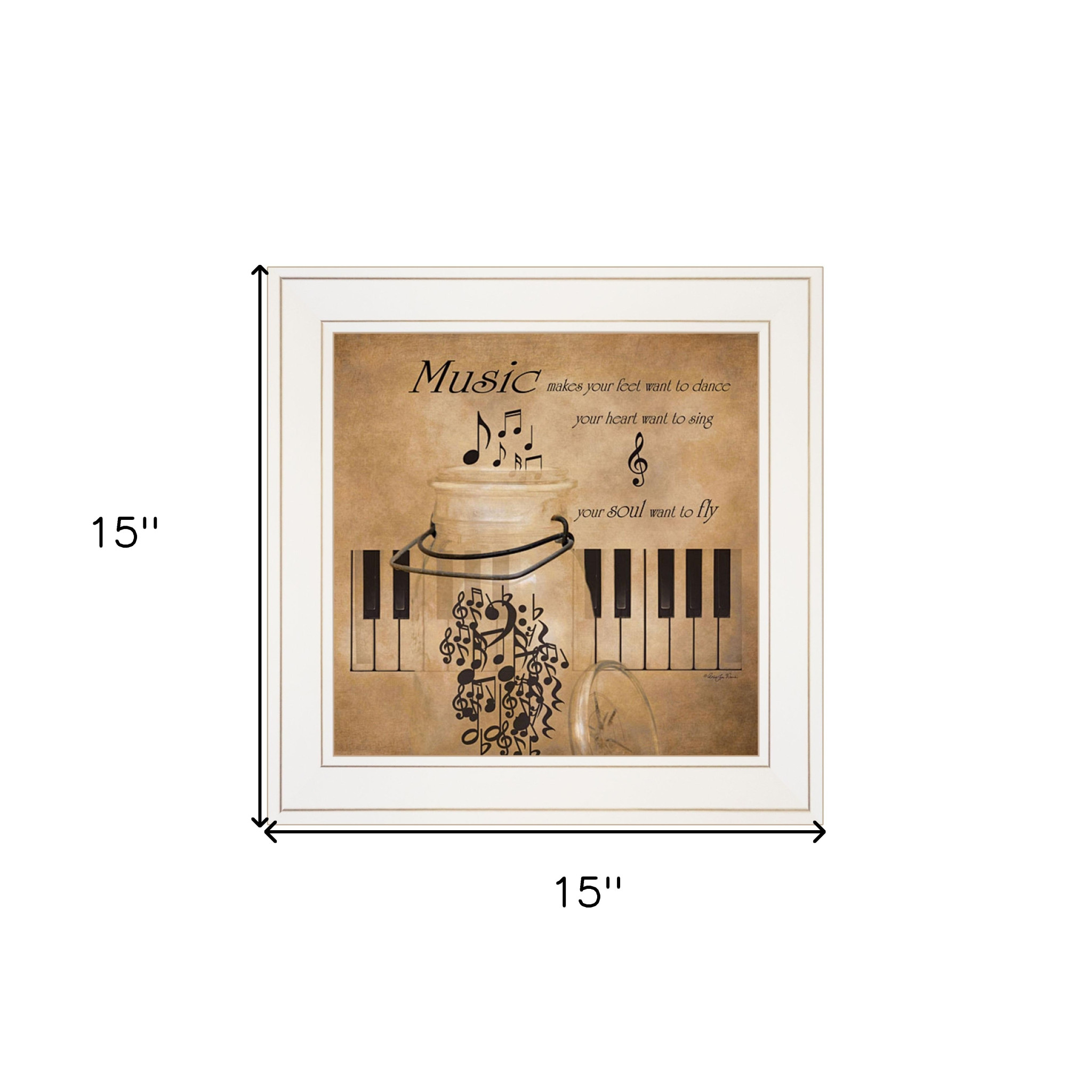 This music 1 white framed print wall art will add a beautiful decorative accent to your decor. This print is a visual artistic expression that allows you to decorate your space in style. Reproduced for you on paper, this hanging decorative accent will be a trendy and fashionable way to dress your walls. Hang on your wall to add some up to date fashion and decoration. Instantly liven up your space with this art that brings color and dimension to your walls. 15-inch H x 15-inch W x 1-inch D