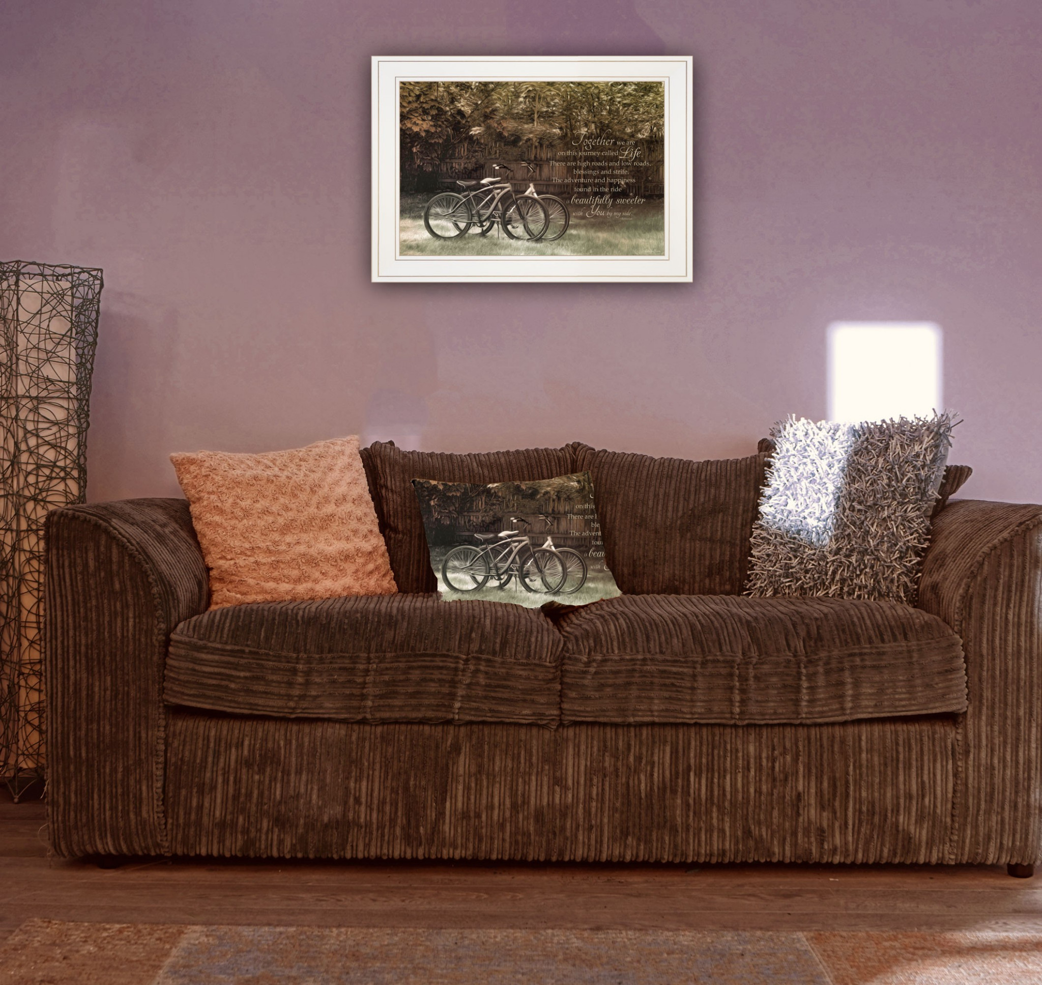 Bring some sizzle to your space with this eye-catching journey together 1 white framed print wall art. This transportation inspired wall art features a bicycle icon and will bring a refreshing look and perspective to your walls. This print is a visual artistic expression that allows you to decorate your space in style. Reproduced for you on paper, this hanging decorative accent will be a trendy and fashionable way to dress your walls. Hang on your wall to add some up to date fashion and decoration. Instantly liven up your space with this art that brings color and dimension to your walls. 15-inch H x 21-inch W x 1-inch D