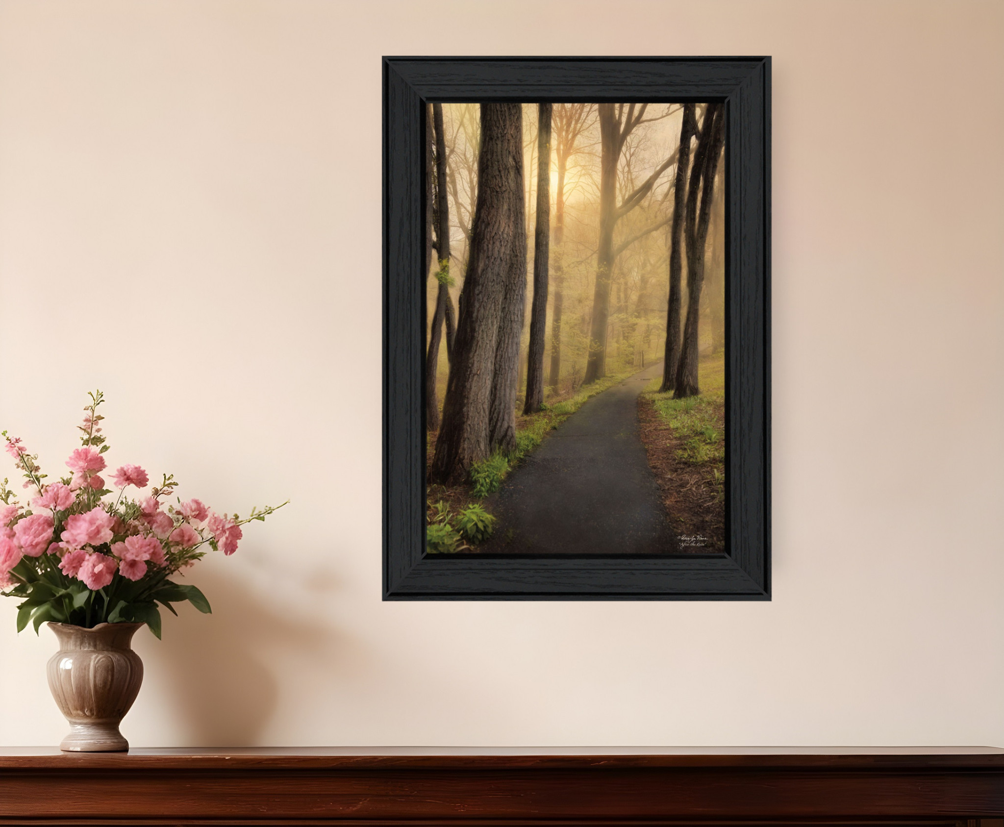 This after the rain black framed print wall art will add a beautiful decorative accent to your decor. This print is a visual artistic expression that allows you to decorate your space in style. Reproduced for you on paper, this hanging decorative accent will be a trendy and fashionable way to dress your walls. Hang on your wall to add some up to date fashion and decoration. Utilize this opportunity to create a focal point in the room with this fabulous wall decor option. 21-inch H x 15-inch W x 1-inch D