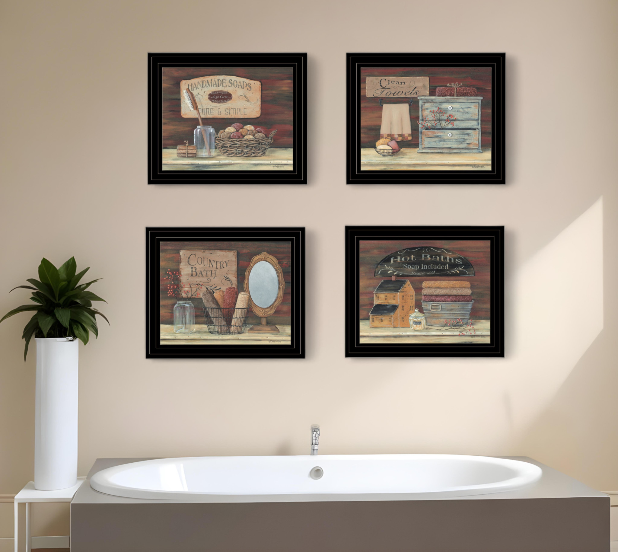 Bring some sizzle to your space with this eye-catching set of four bathroom collection i 2 black framed print bathroom wall art. This print is a visual artistic expression that allows you to decorate your space in style. Reproduced for you on paper, this hanging decorative accent will be a trendy and fashionable way to dress your walls. Adding this hanging wall art to your space to make your room feel more finished and attractive. Utilize this opportunity to create a focal point in the room with this fabulous wall decor option. 14-inch H x 17-inch W x 1-inch D