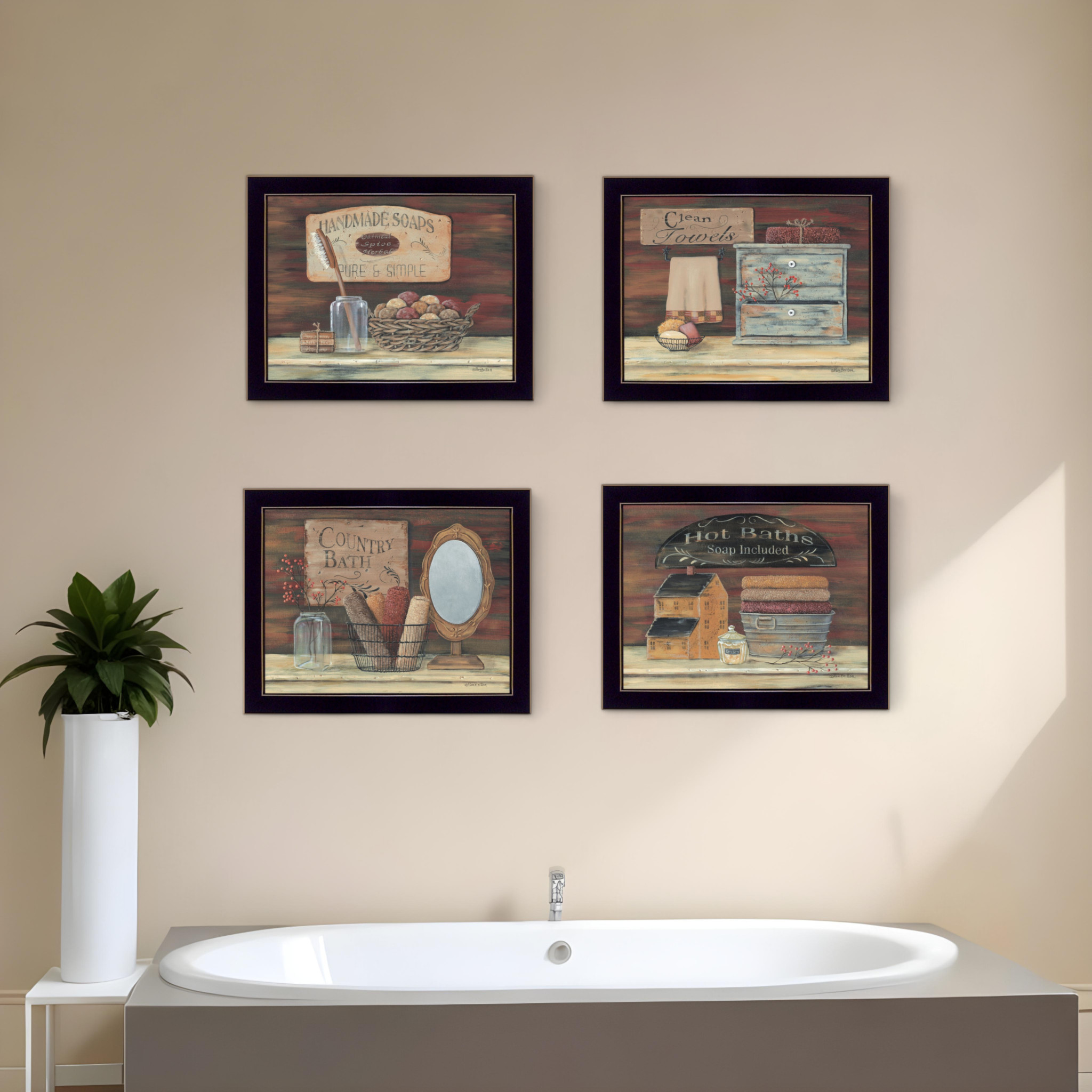Add an air of fashion to your room and rejuvenate the space with this set of four bathroom collection ii 2 black framed print bathroom wall art. This print is a visual artistic expression that allows you to decorate your space in style. Reproduced for you on paper, this hanging decorative accent will be a trendy and fashionable way to dress your walls. Hang on your wall to add some up to date fashion and decoration. Instantly liven up your space with this art that brings color and dimension to your walls. 13-inch H x 16-inch W x 1-inch D