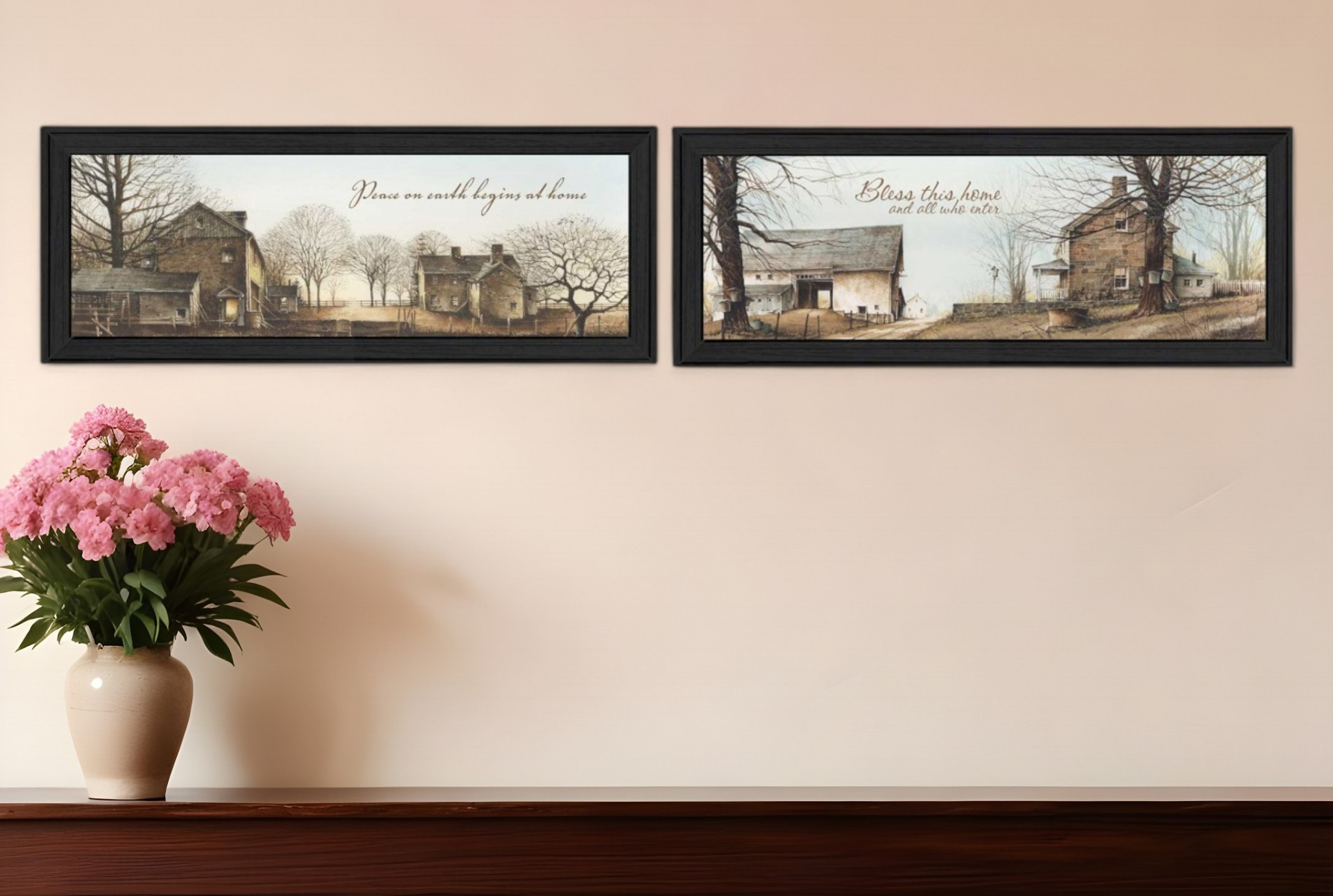 The set of two farms black framed print wall art is the perfect decorative accessory for your home. This print is a visual artistic expression that allows you to decorate your space in style. Reproduced for you on paper, this hanging decorative accent will be a trendy and fashionable way to dress your walls. Adding this hanging wall art to your space to make your room feel more finished and attractive. Utilize this opportunity to create a focal point in the room with this fabulous wall decor option. 9-inch H x 42-inch W x 1.5-inch D